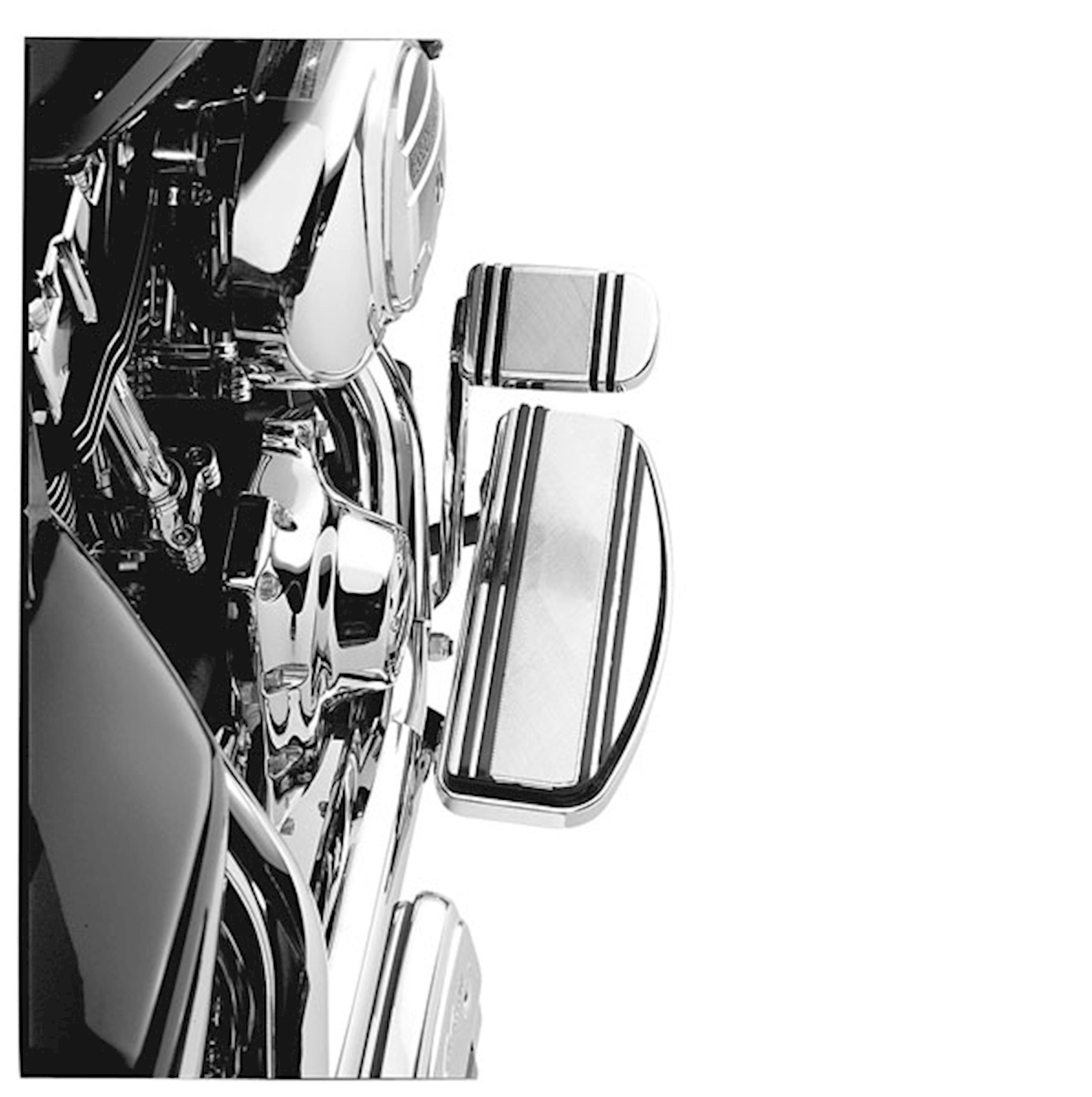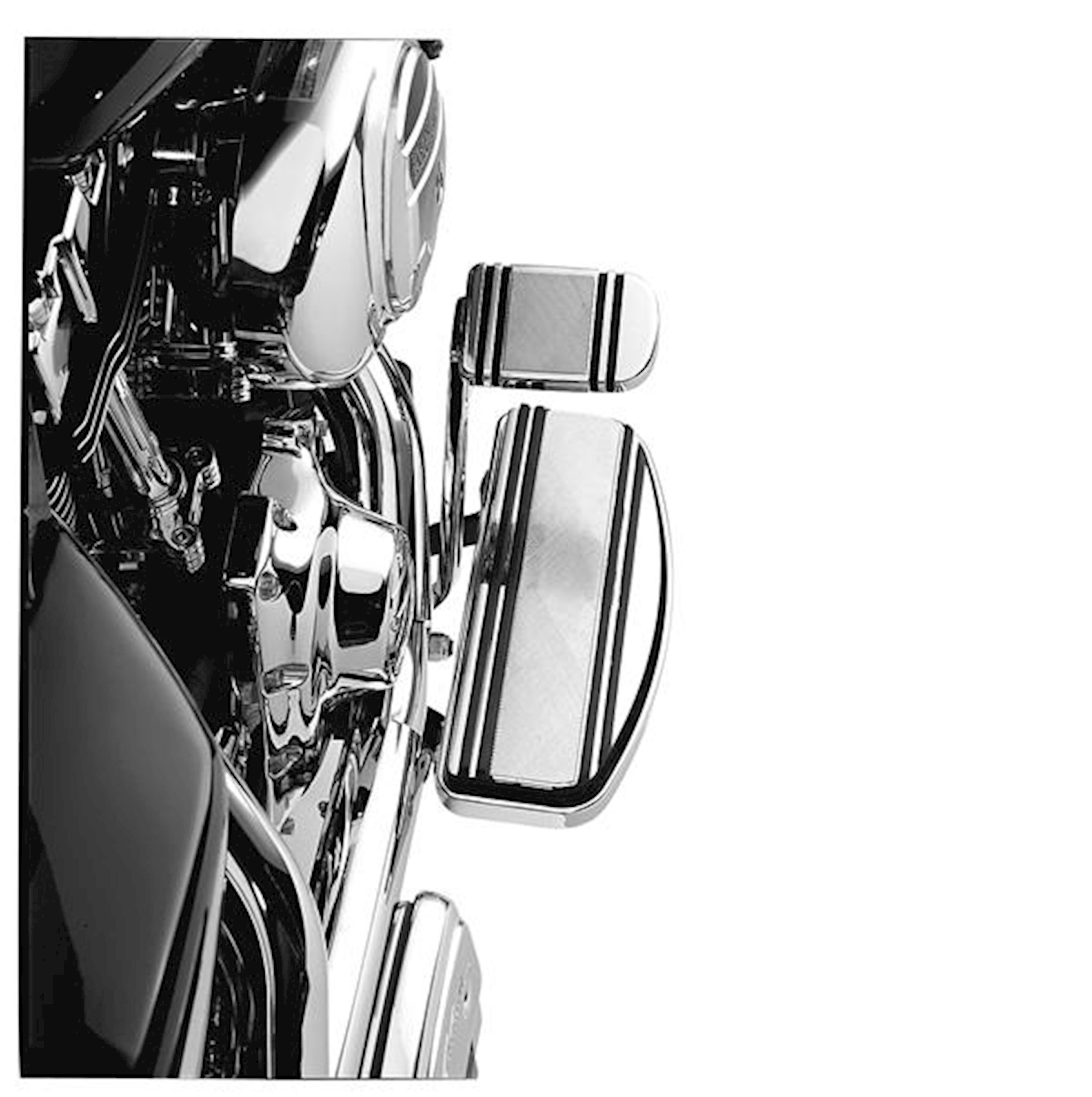 These rider and passenger footboard inserts complete the clean, custom billet look. Machined from billet aluminum and combined with high-durability rubber, these inserts retain the cast-in vibration isolation found in the stock footboard inserts. Kit includes right and left insert.