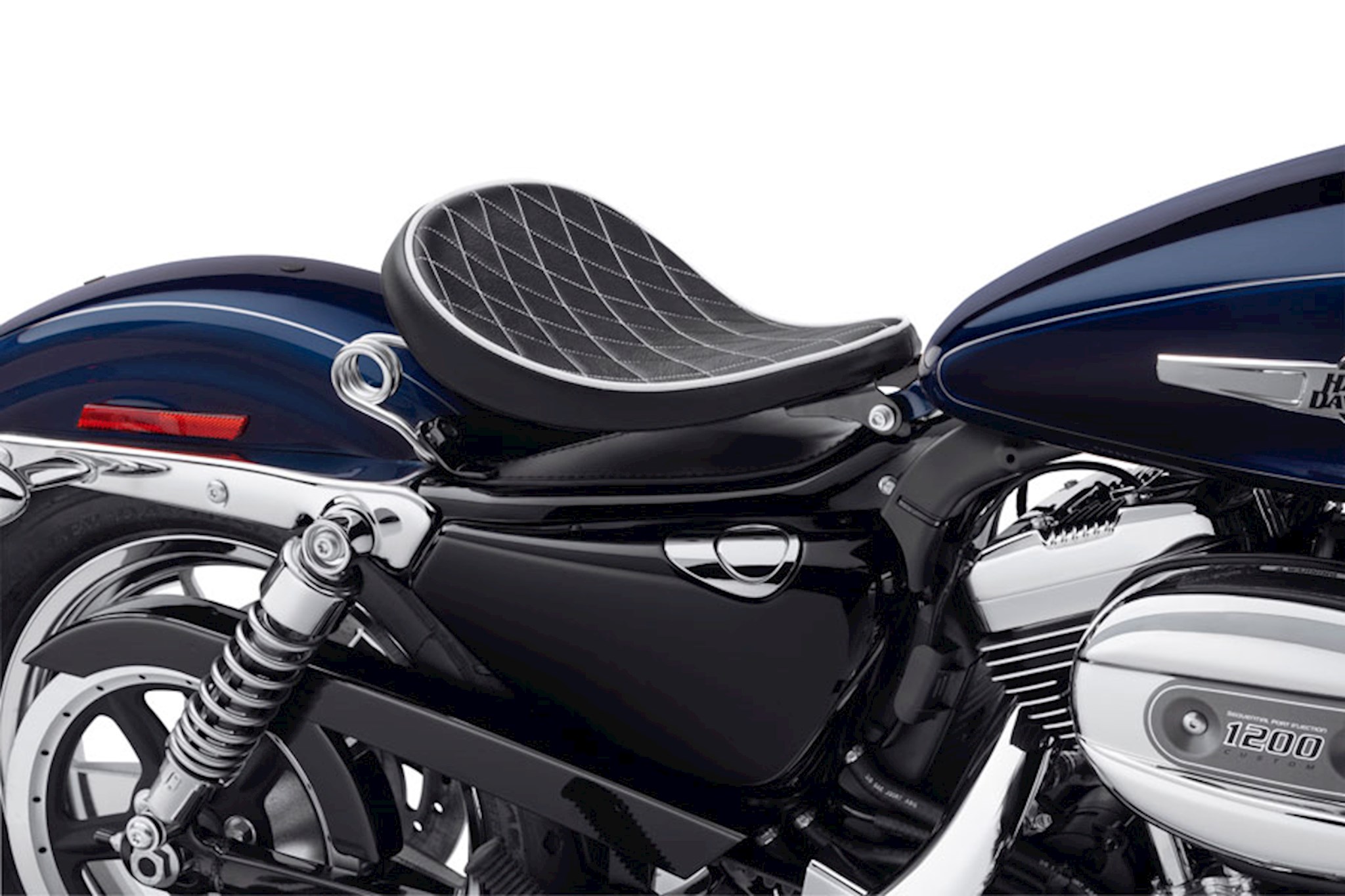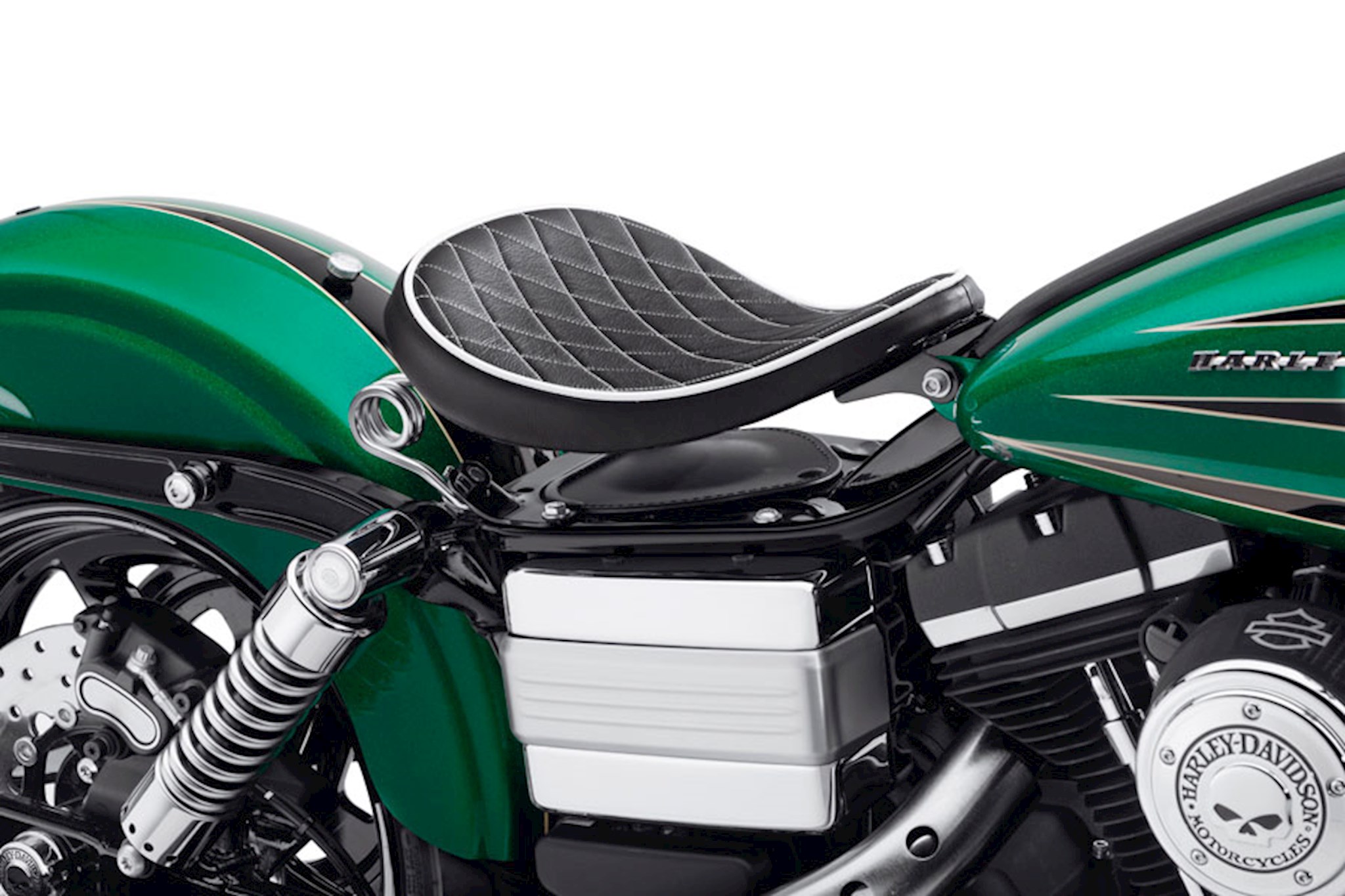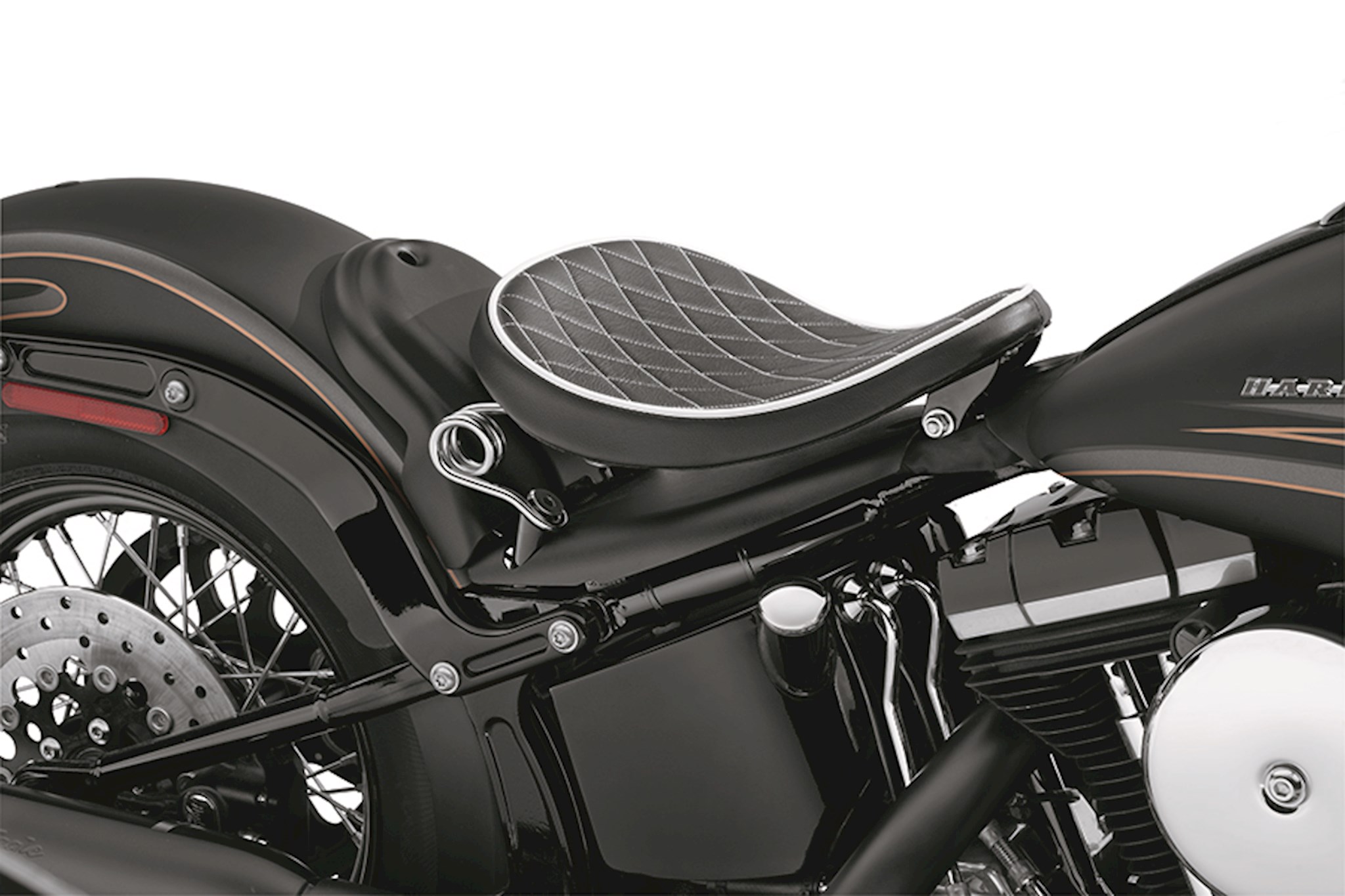 Add nostalgic “bobber” looks to your modern Harley-Davidson® motorcycle. Available in elegant leather, this solo seat features a low-profile design that provides the minimalistic “just enough to ride” look. The smooth metal seat pan and the simple frame cover leave a clean, finished appearance. Easy to install, the bolt-on seat and model-specific Spring Seat Installation kit include everything you need to get the bobber look. No cutting, welding or fabrication is necessary and the seat can be removed and replaced with a touring seat for a two-up night on the town.