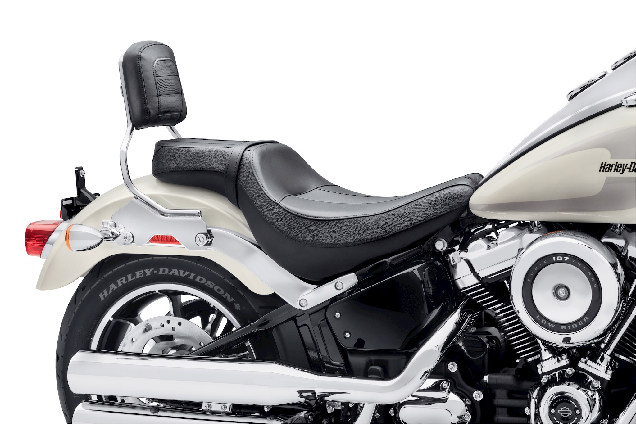 Measurements as compared to other seating options: - Stock '18 Low Rider model seat - 2.75" rearward, 1.0" higher.