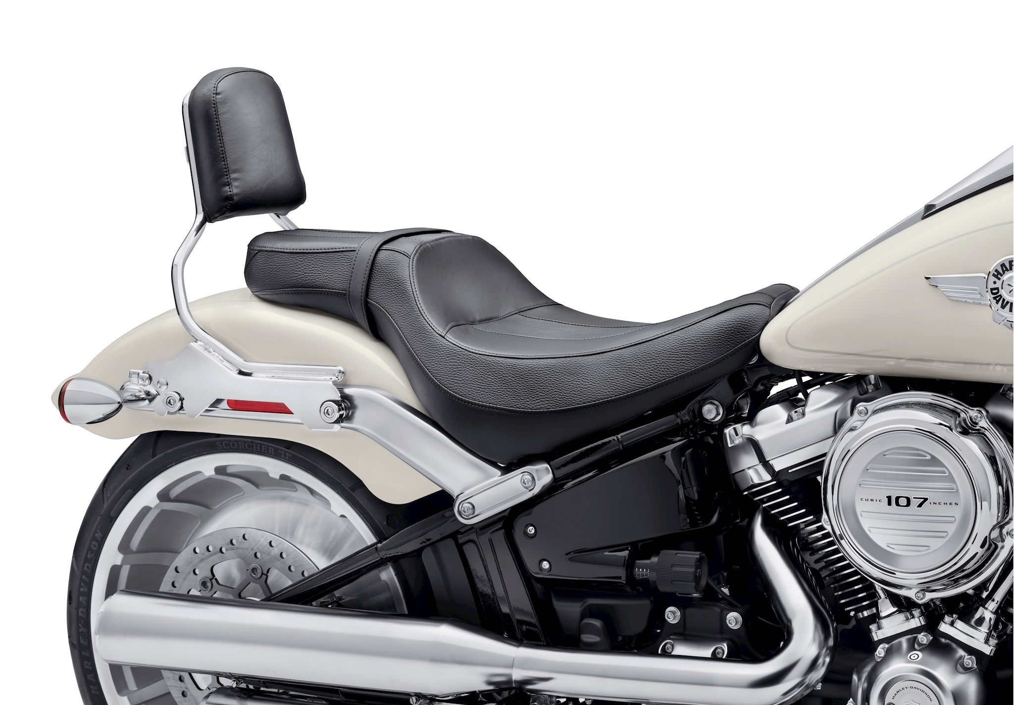 Fits ’18-later FLFB, FLFBS, FXBR and FXBRS models. Seat width 14.25”; passenger pillion width 10.0”.