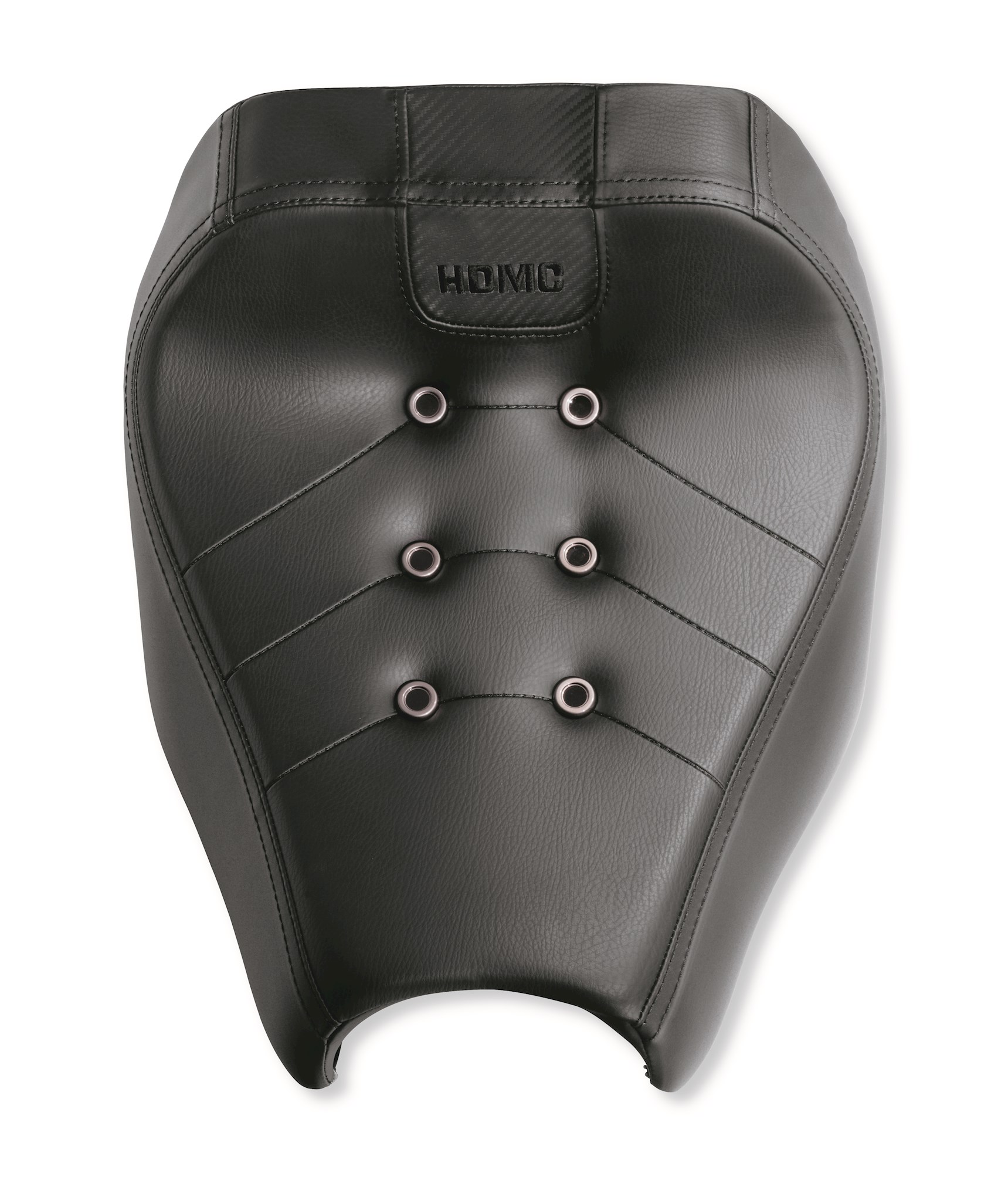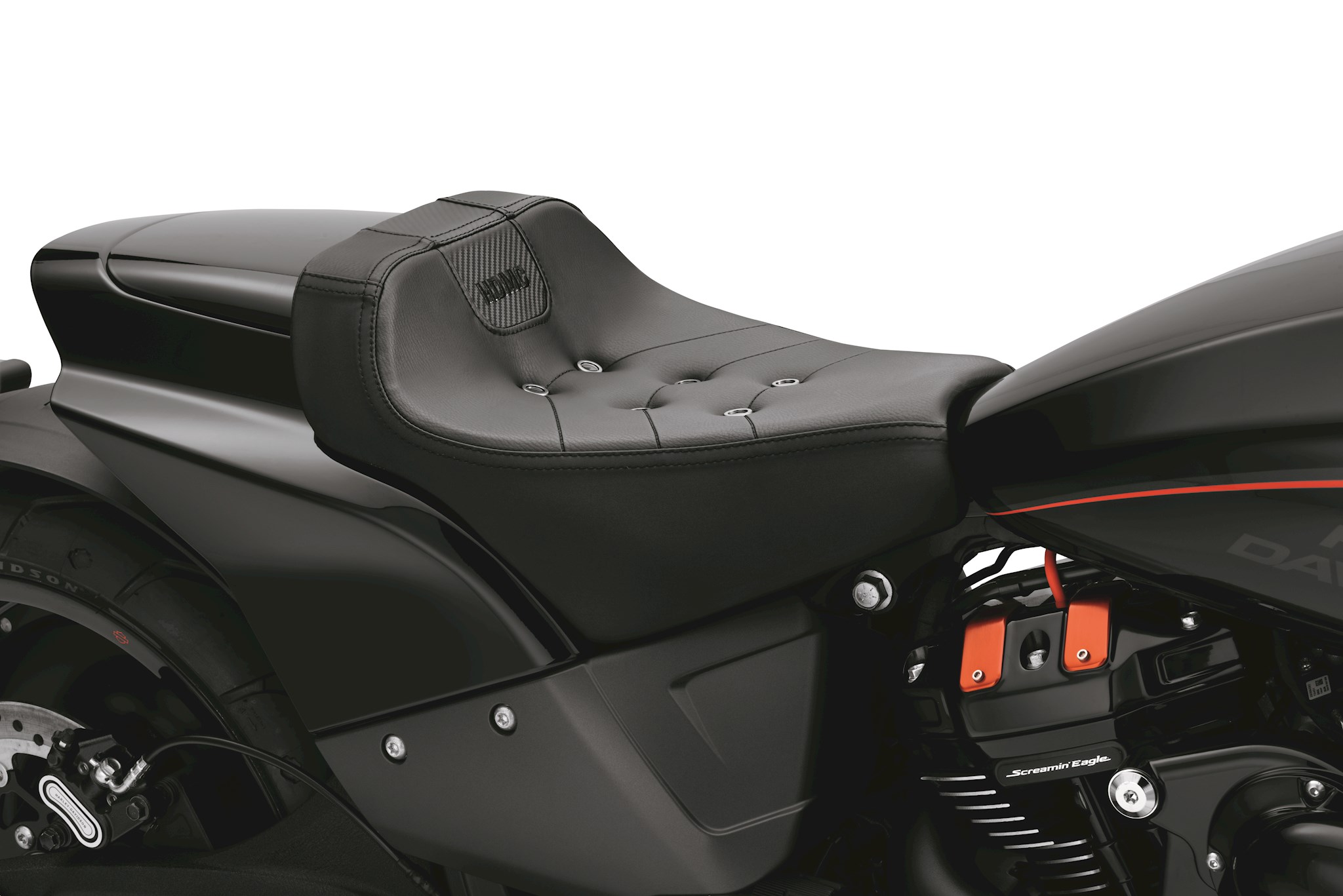 You make zero compromises when it comes to style so you’re not about to trade looks for comfort. And why should you? Now you can have the best of both worlds and no one needs to know. The Bevel Seats were created with all the attitude to suit your styling direction while providing all the function without the bulky look of a comfort seat. The low, slim profile of the Bevel Seats complement the lines of your bike while the carbon fiber-like inserts, chevron-shaped pleating, HDMC embroidered script and edgy aluminum button detail, that your back end won’t feel, add a custom look. What nobody sees but makes any ride better is the lightweight and breathable 3-D mesh material. 3-D mesh absorbs the impact of even the worst roads even though the material is significantly thinner than comparable seats. Taped seams provide water-resistance to keep your back-end dry even when the seat is wet and, the “bevel” at the back of the seat adds to the rider’s lower back comfort.