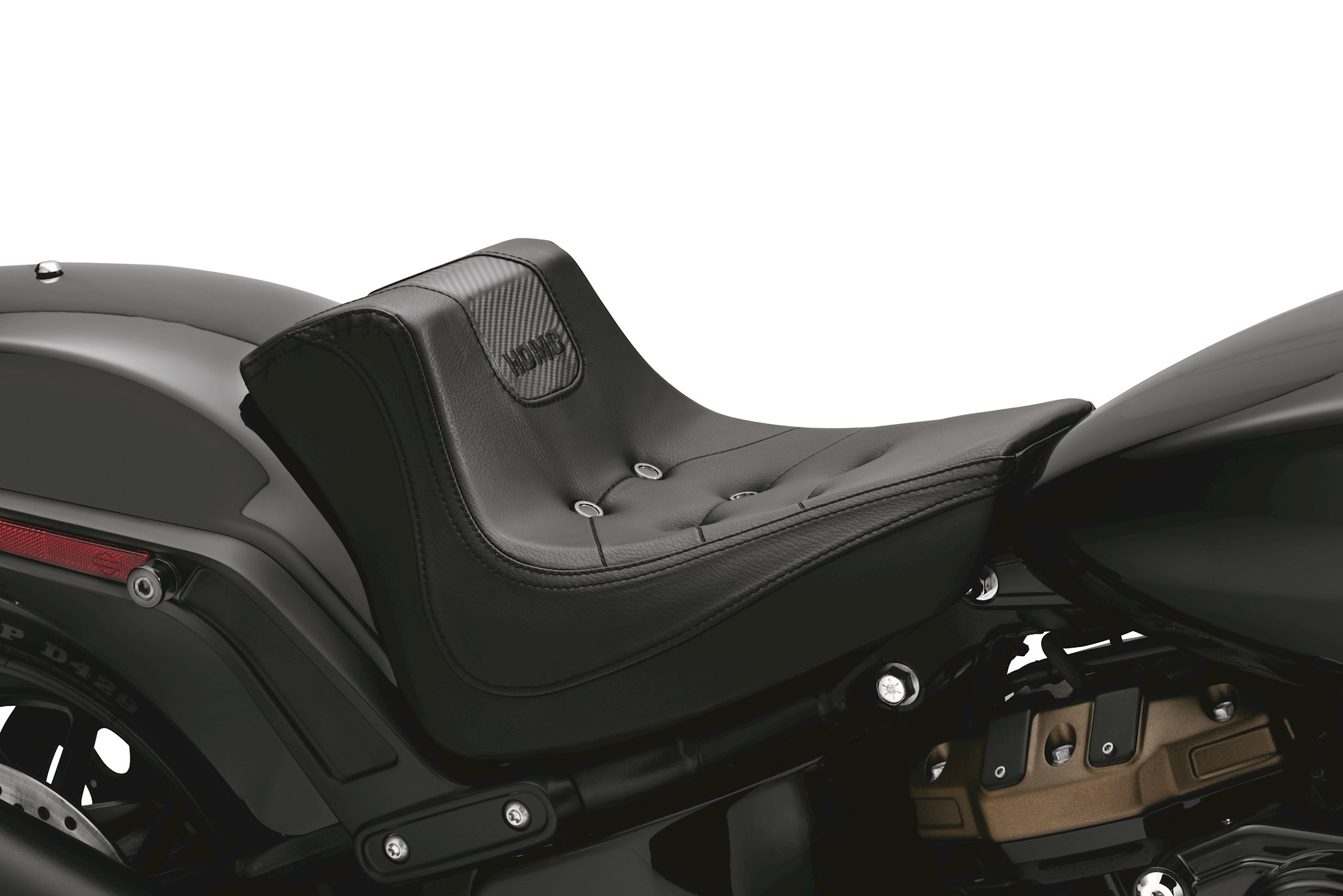 You make zero compromises when it comes to style so you’re not about to trade looks for comfort. And why should you? Now you can have the best of both worlds and no one needs to know. The Bevel Seats were created with all the attitude to suit your styling direction while providing all the function without the bulky look of a comfort seat. The low, slim profile of the Bevel Seats complement the lines of your bike while the carbon fiber-like inserts, chevron-shaped pleating, HDMC embroidered script and edgy aluminum button detail, that your back end won’t feel, add a custom look. What nobody sees but makes any ride better is the lightweight and breathable 3-D mesh material. 3-D mesh absorbs the impact of even the worst roads even though the material is significantly thinner than comparable seats. Taped seams provide water-resistance to keep your back-end dry even when the seat is wet and, the “bevel” at the back of the seat adds to the rider’s lower back comfort.