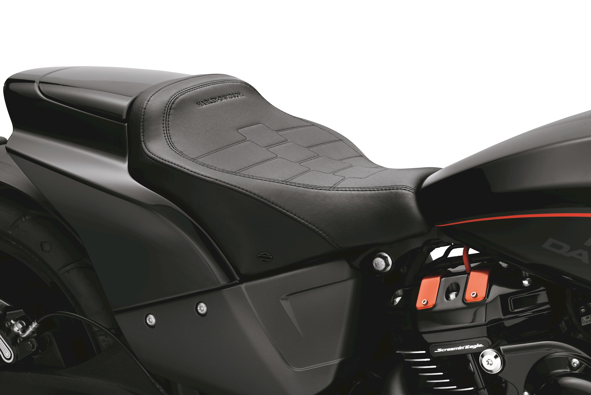 With the Sundowner Seat, you don't have to sacrifice style for comfort. The watch-strap pleated design provides a high-tech look while ensuring pressure points are eliminated and, the black on black stitching complements the FXDR 114's styling. While the Sundowner Seat's low profile makes it the perfect match for the FXDR 114, it is much wider than the stock seat which helps distribute body weight for long-haul comfort while the scooped shape provides added rider back support while removing pressure points.