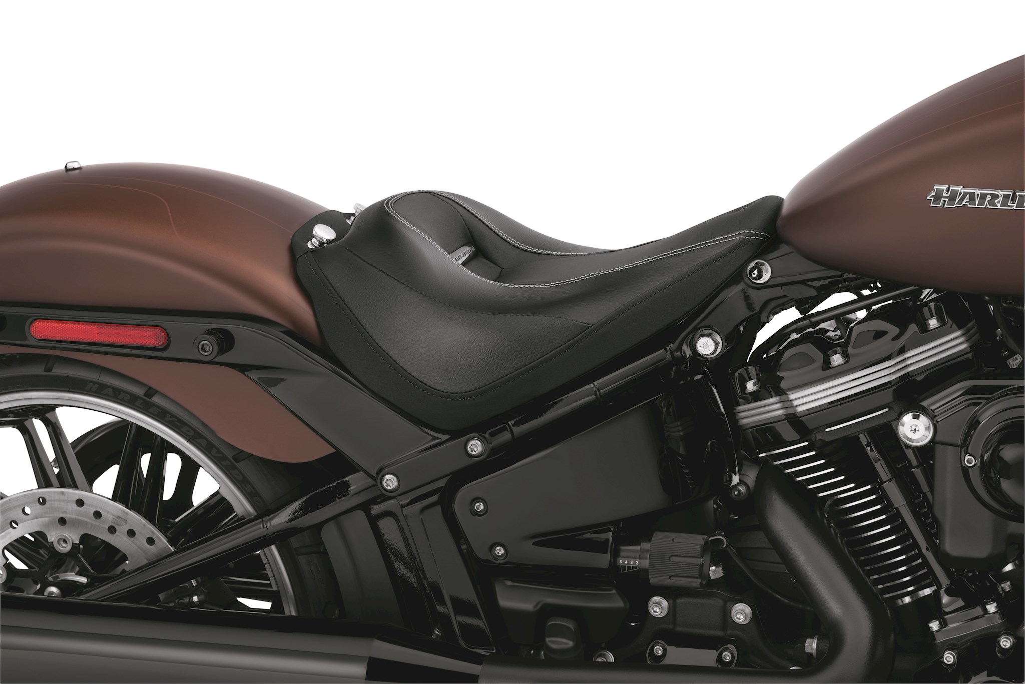 This comfortable Reach Solo Seat is styled to match the Softail Breakout model’s Original Equipment seat and features grey stitching, a textured vinyl inlay and Harley- Davidson medallion insert. The seating surface and stitching complements the model year ’19 Original Equipment passenger pillion.