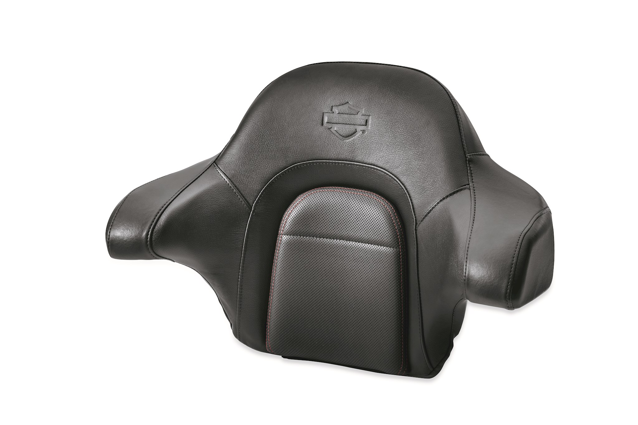 Wrap-around King Tour-Pak Backrest Pads are shaped to surround your passenger in comfort.The curved shape cradles the back and the integrated side wings fit naturally beneath your passenger’s arms for added support. These backrests feature easy-to-install isolation mounts to reduce contact between the pad and the Tour-Pak luggage. King Backrest Pads are available in a variety of styles to match most seating surfaces.