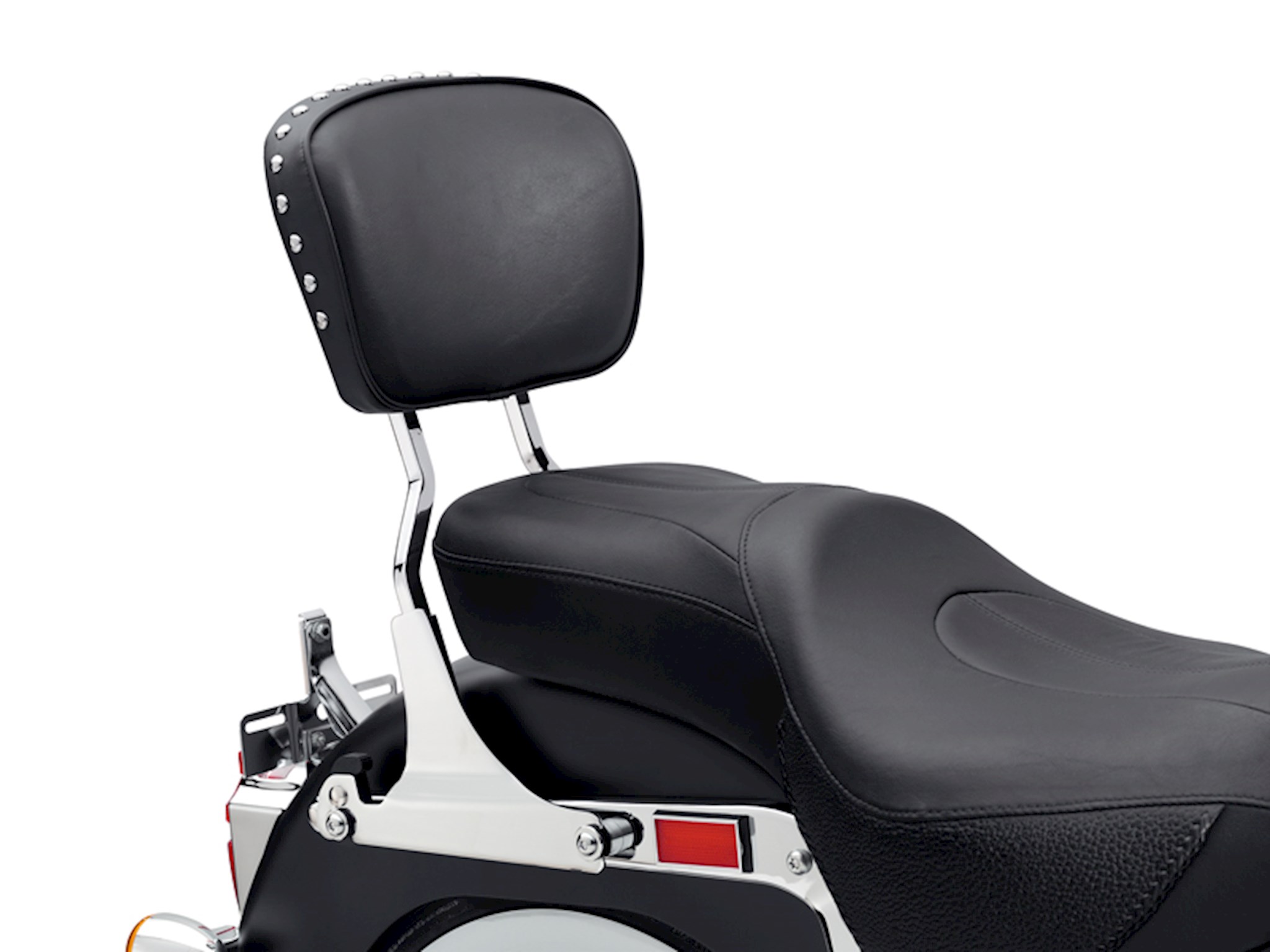 Sized to fit medallion and mini medallion-style sissy bar uprights. Pad mounts with single center screw and bolt-on mounting strap. Kit includes chrome-plated mounting hardware. Fits Low Medallion Style Sissy Bar Upright P/N 52655-84, 52909-02, 52754-04, 51851-09, Standard Medallion Style Sissy Bar Upright P/N 52735-85 or 52877-08, Standard Square Bar Mini Medallion Style Sissy Bar Upright P/N 53281-06 or 53407-06, Standard Heritage Style Sissy Bar Upright P/N 52731-00 and Standard Round Bar Sissy Bar Upright P/N 52300018 or 52300020.