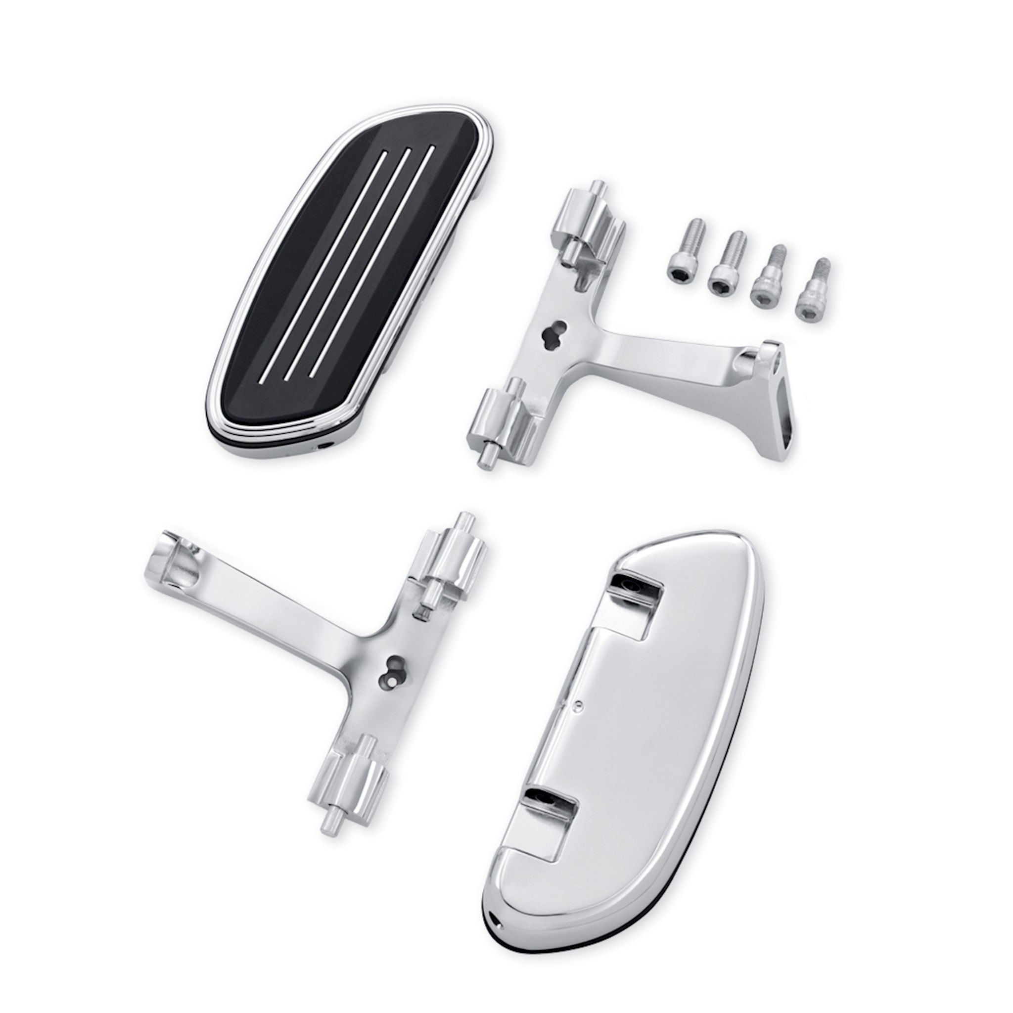Polished and plated to a mirror finish, this chrome version of the Original Equipment black passenger footboard support adds a custom touch and complements accessory floorboard inserts and covers. Kit includes left and right support, and reuses stock hardware for installation.