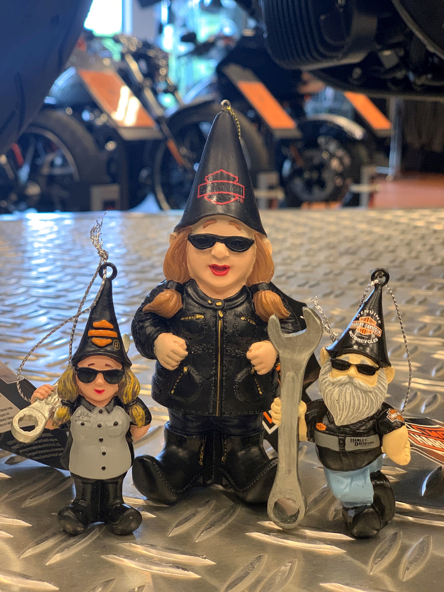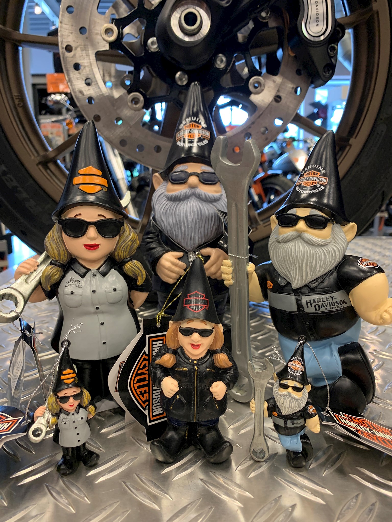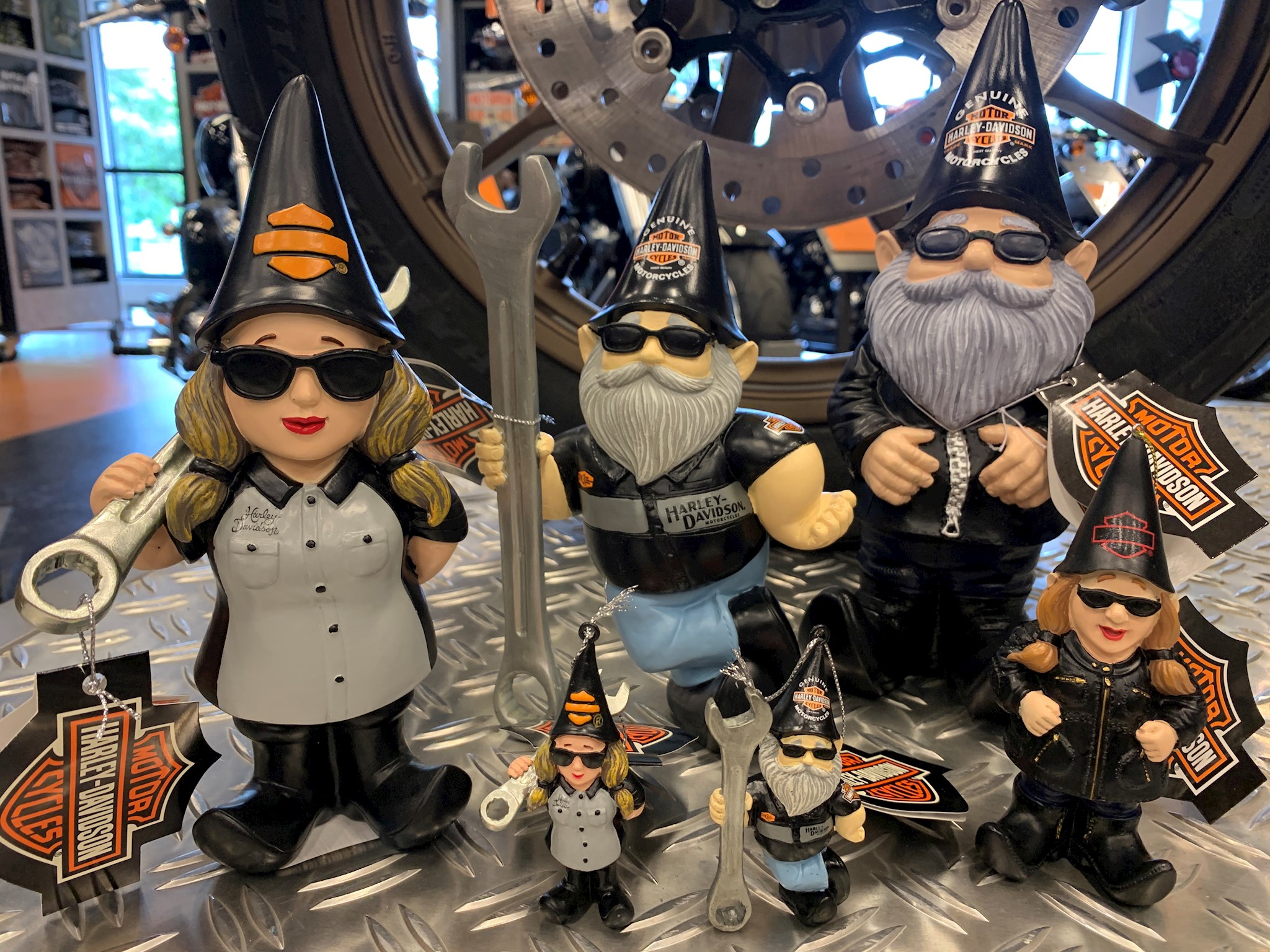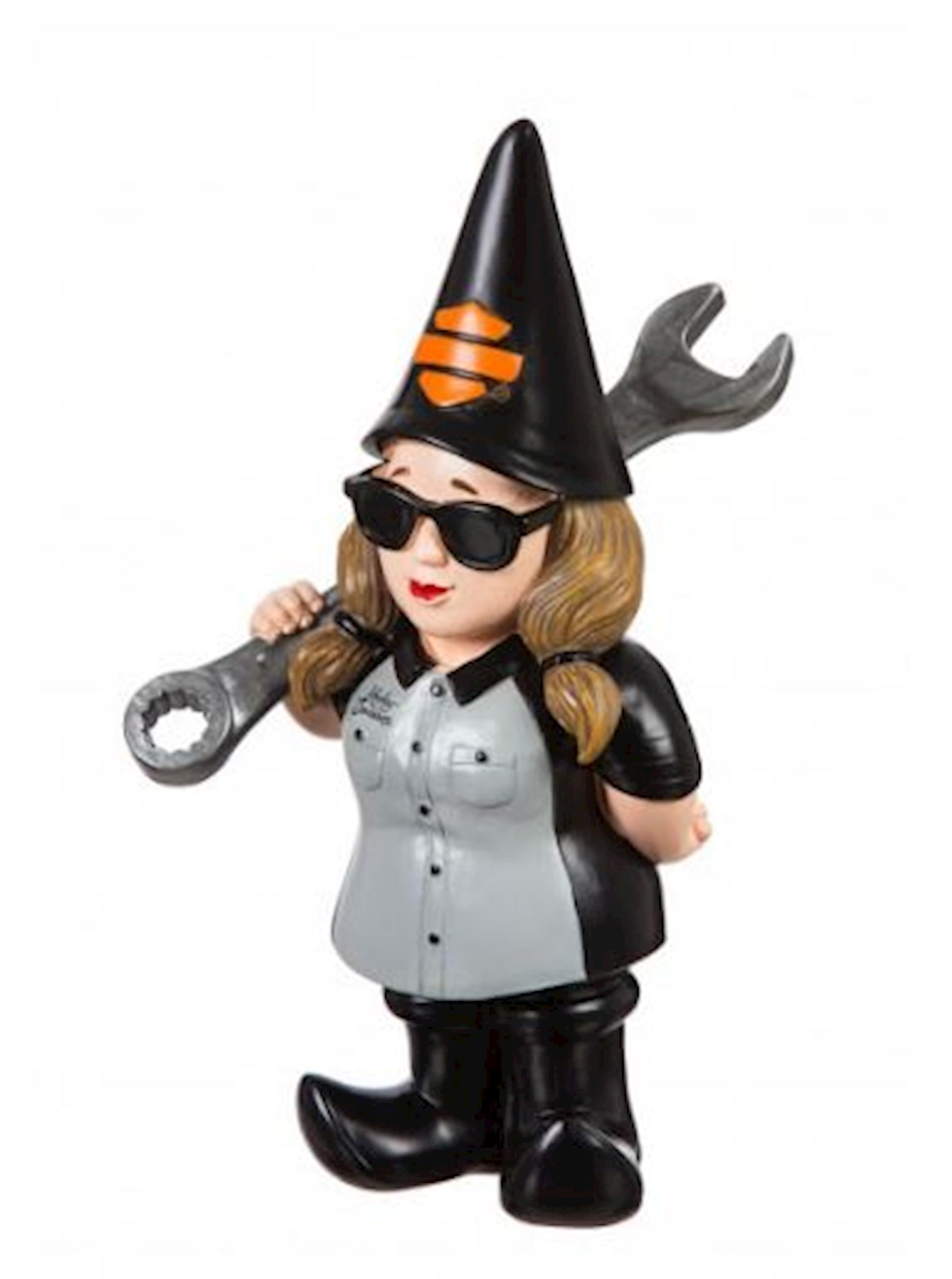 Harley-Davidson® Biker Themed Garden Gnome. First, a little history. Garden Gnomes were first created in 1840’s Germany. Within 10-years these statues spread all across Europe. They’re popularity spread because these Gnomes are believed to bring good luck to your garden. Even the most cynical among us might want to agree. These little fellows do have their charms. This gnome is made of durable and long lived Poly Stone™, which is UV, fire, chemical, and stain resistant. Now you can also bring good luck to your favorite rider with this biker themed gnome. He is decked out in his leathers and biker boots – he is ready to ride.