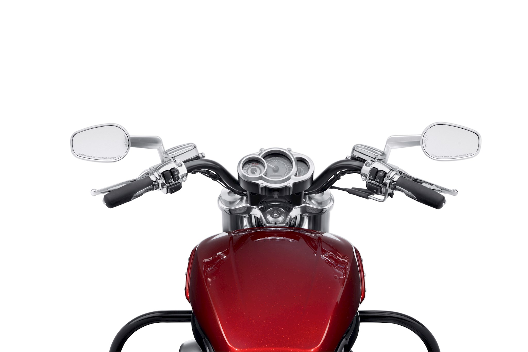 Love the look and feel of the V-Rod Muscle® motorcycle but feel a little "stretched out" in your reach to the bar? This unique riser and clamp will allow you to replace the Original Equipment cast drag bar with the Reduced Reach® Handlebar P/N 57466-10. The 1.0" diameter Reduced Reach Handlebar puts the rider in an upright seating position for added comfort and control. The bar and riser combination provides 2.0" pull back when compared to the stock VRSCF handlebar. Installation retains the factory hand controls and turn-signal style mirrors and no additional cables or lines are required.