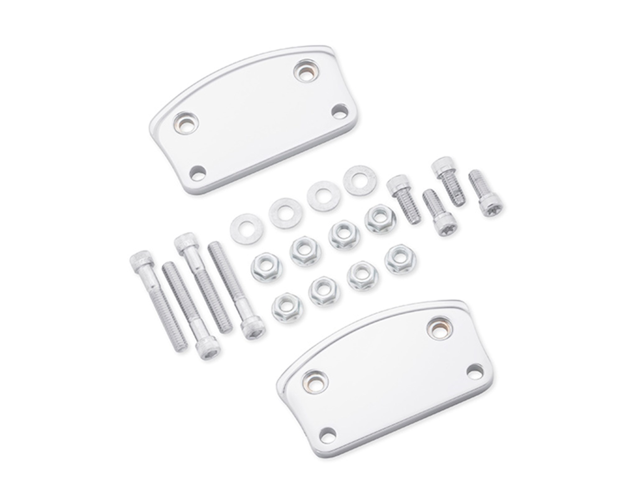 Add a true custom style to your Touring model. This polished and chrome-plated Adapter Kit will allow you to install the smooth curving Fat Boy® or Street Stalker® front fender on your Touring bike. Manufactured from 6061-T6 billet aluminum, this kit includes all necessary mounting hardware. See your Dealer for primed or Color-Matched fender options.