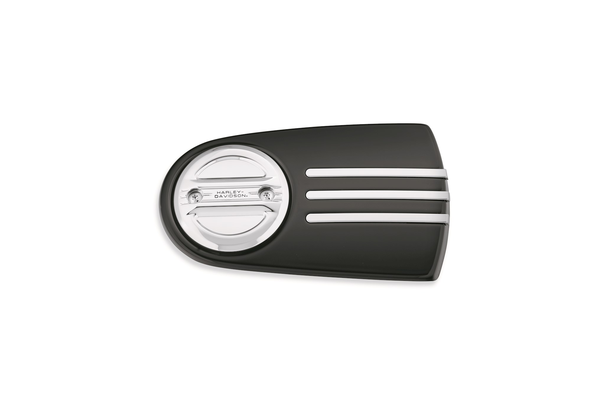Shaped to cheat the wind. The polished and mirror-chromed Airflow Collection features a raised bridge with 3 laminar grooves that float over the recessed panels. The layered surfaces capture light and shadows, and frame the subtle black-filled Harley-Davidson signature. This complete collection sets the stage for your one-of-a-kind custom ride. Includes chrome-plated mounting hardware.
