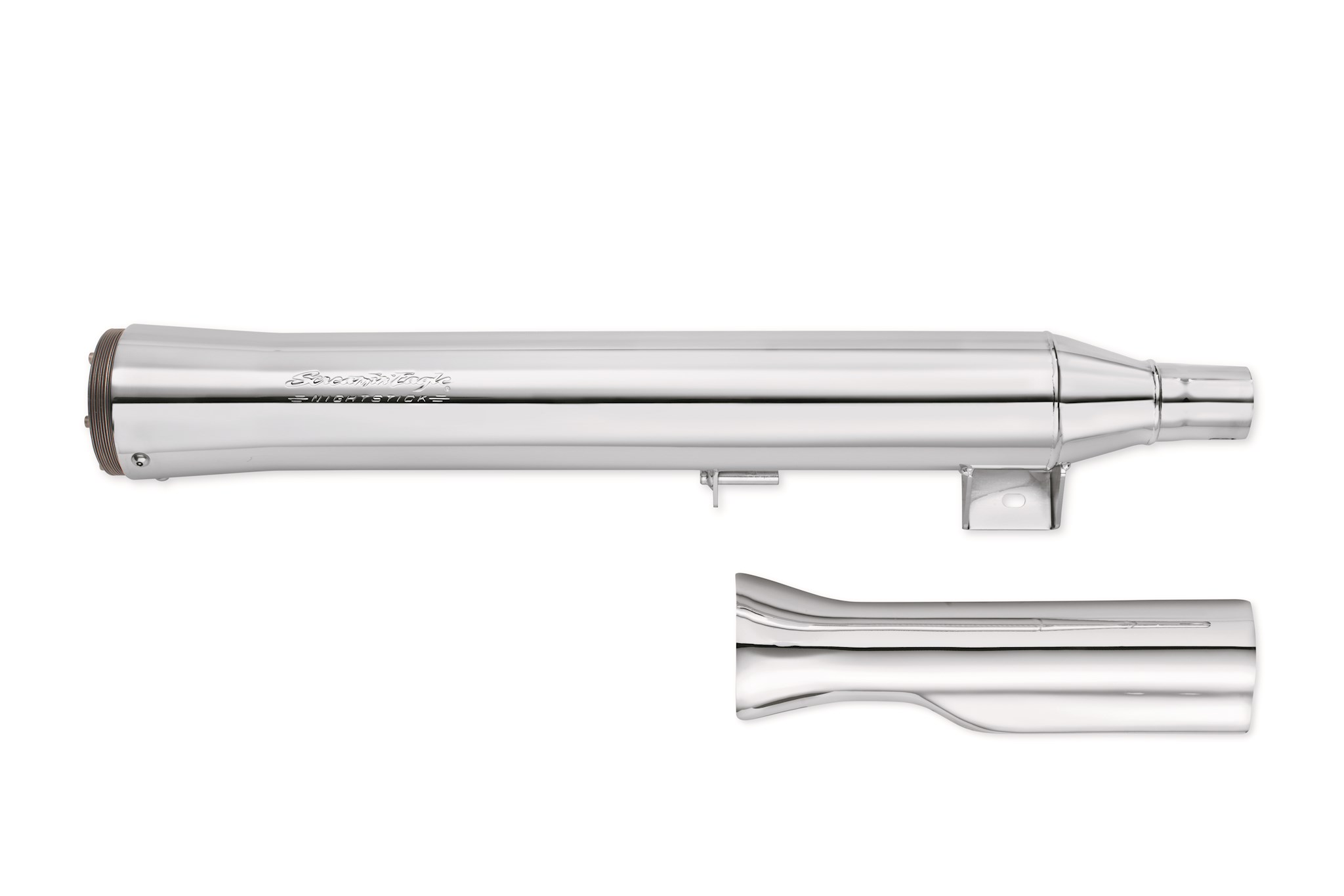 Tuned by the factory for the ultimate combination of improved performance, rich tone and legal sound levels, these 50-state street legal slip-on mufflers are the perfect match for your Dyna® Switchback™ model. The high-flow design of the external diffusion discs produces plenty of low-end "guts" to get your bike away from the light and a fat torque curve that gets you quickly around slow-moving traffic. The flared opening, multiple stainless steel diffusion discs and domed end cap deliver an aggressive raspy sound. Available in mirror-chrome and jet black finish, these long and lean pipes feature an embossed Screamin' Eagle® logo. Easy to install. EPA stamped. Fits '14-later FXDL models.
