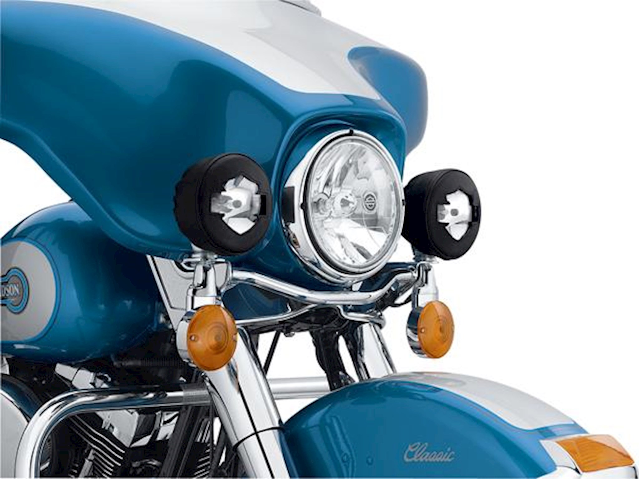 Add a degree of protection and style to your auxiliary lighting with these slip-on Bar & Shield Lamp Covers. The vinyl covers hug the contours of the lamp and help deflect bugs and dirt from the lamp trim ring for easy cleaning. The elastic bands and hooks hold the covers firmly in place. Kit includes right and left cover.