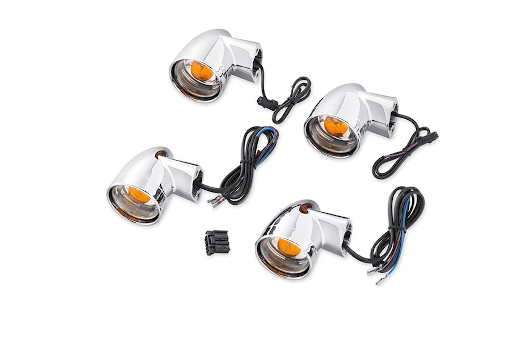 Streamline the styling by replacing the front and rear flat lens turn signal lamps with sleek bullet signals. The bullet-shaped housings attach to the Original Equipment turn signal mounting brackets. The kit includes two front and two rear turn signal assemblies and the necessary hardware for installation. Fits '94-'13 FLHT, FLHTC and FLHTCU, '94-later FLHR and FLHRC, '98-'03 FLTR, '96-later FLSTC and '93-'96 FLSTN models.