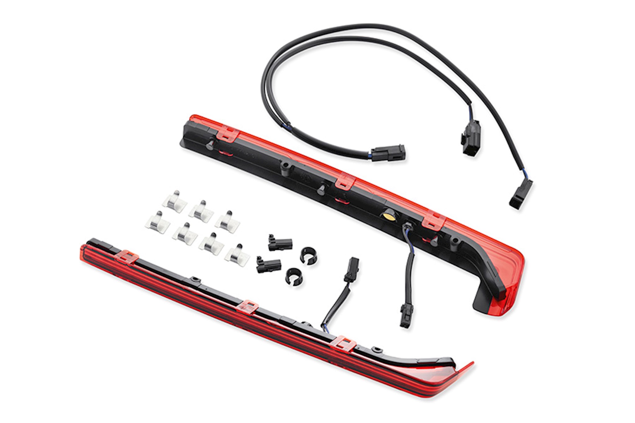 This wrap-around Side Marker Light Kit adds a splash of light to the lower edge of the Tour-Pak Luggage System. Kit replaces the chrome side trim along the lower edge of the Tour-Pak on Electra Glide Classic models or replaces the Original Equipment red lens featured on Ultra Classic® Electra Glide and Tri Glide models. Available in your choice of red or smoked lens. The smoked lens remains stealthy while the ignition is off, but glows red when the lights are switched on. Complete kit includes left and right lens housings, wiring harness and all required installation hardware.