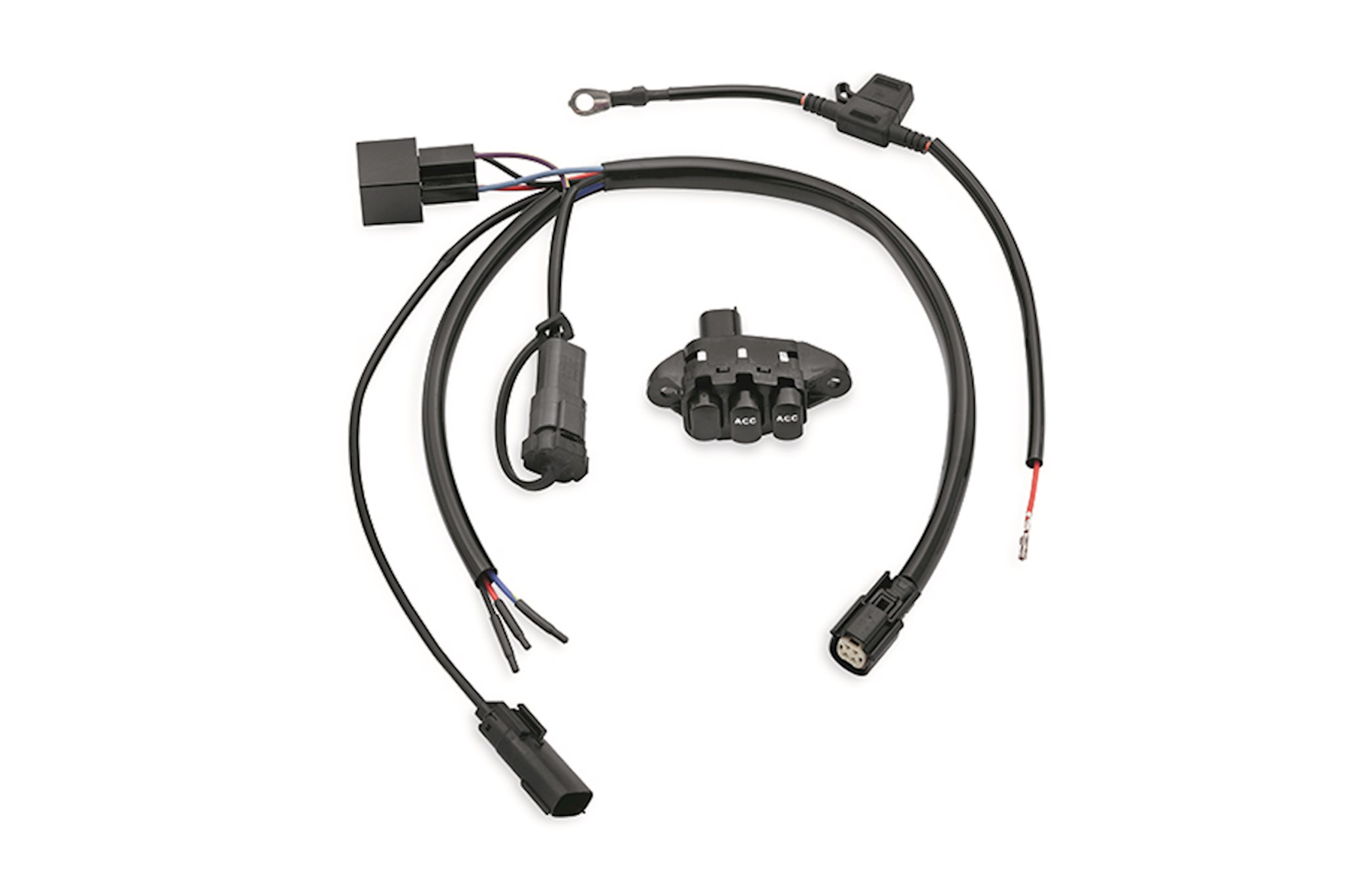 Styled to match the Original Equipment fairing dash panel switches. These Auxiliary Power switches allow you to control additional fog lamps, auxiliary lighting, heated gear or electrical accessories with the touch of a finger. Kit includes two auxiliary switches, wire harnesses and installation hardware.