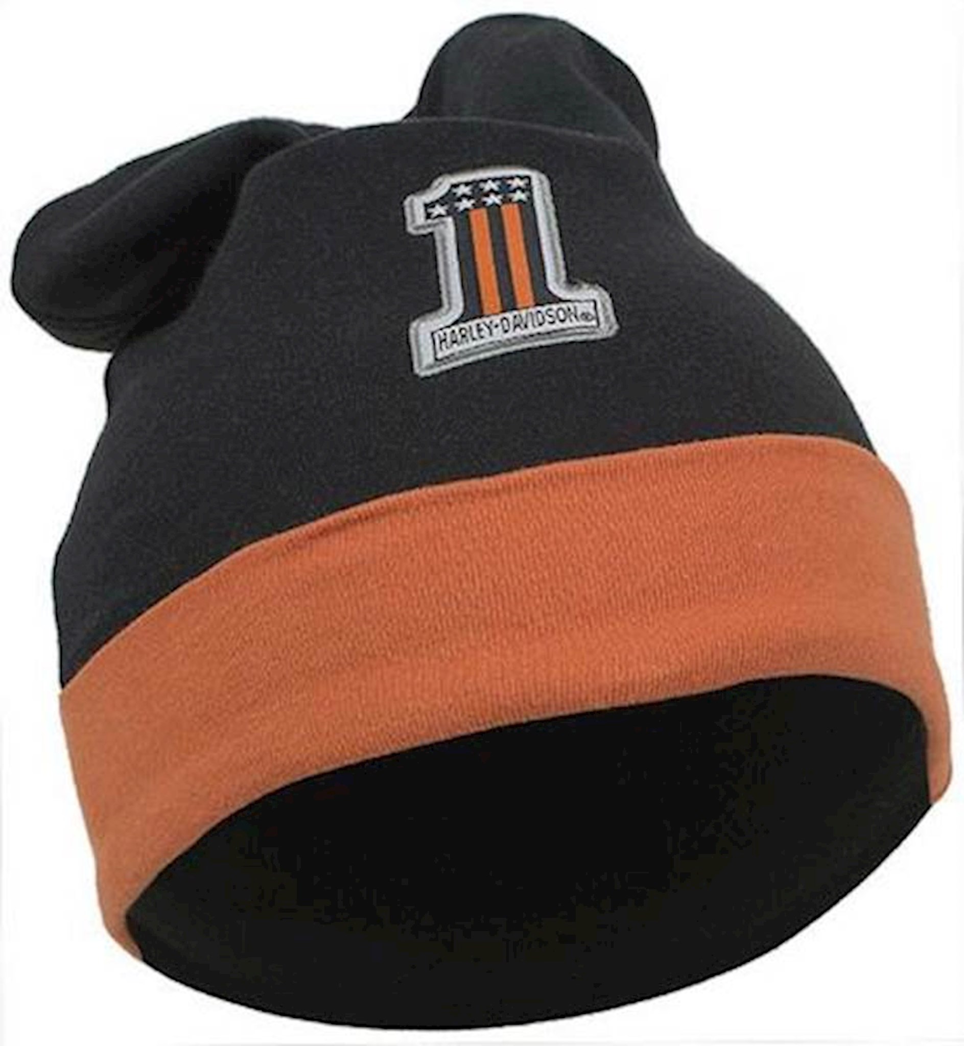 Harley-Davidson® Baby Boys' Slouchy Knit Beanie,7261803. Super soft and stretchy, made from 60% cotton and 40% polyester. Awesome embroidered #1 logo accented with orange and black. Your little Harley man will definitely stay warm this winter with this adorable knit cap!