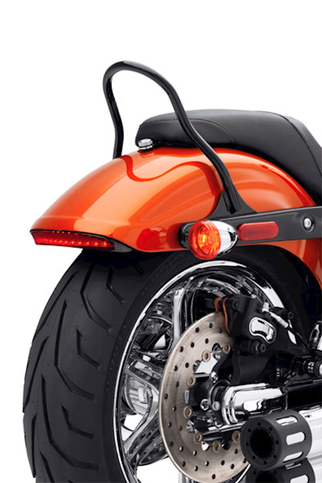 Style and function in one. This center-mount running and brake light commands the attention of following vehicles. The bright, fast-acting LED lamp glows red when the ignition is on and intensifies when the brakes are applied. The low-profile lamp is contoured to hug the curve of the chopped rear fender and adds a stylish touch of color, even when the bike is parked.