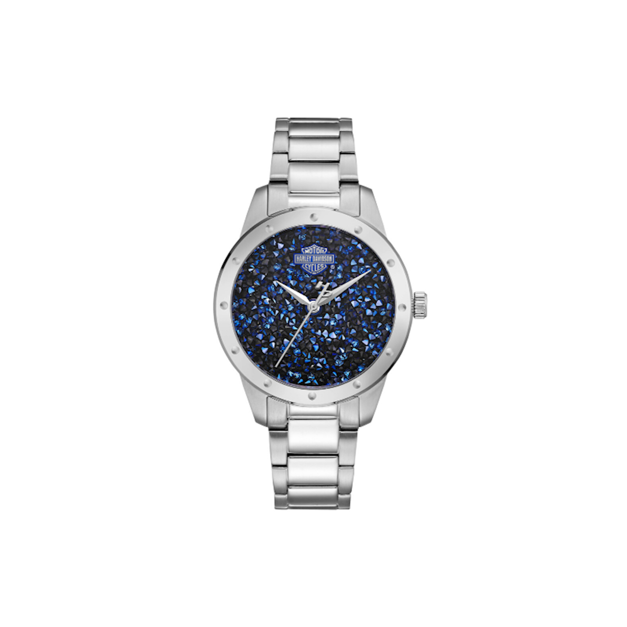 Harley-Davidson® Women's Blue Crystal Rock Sparkles Stainless Steel Watch