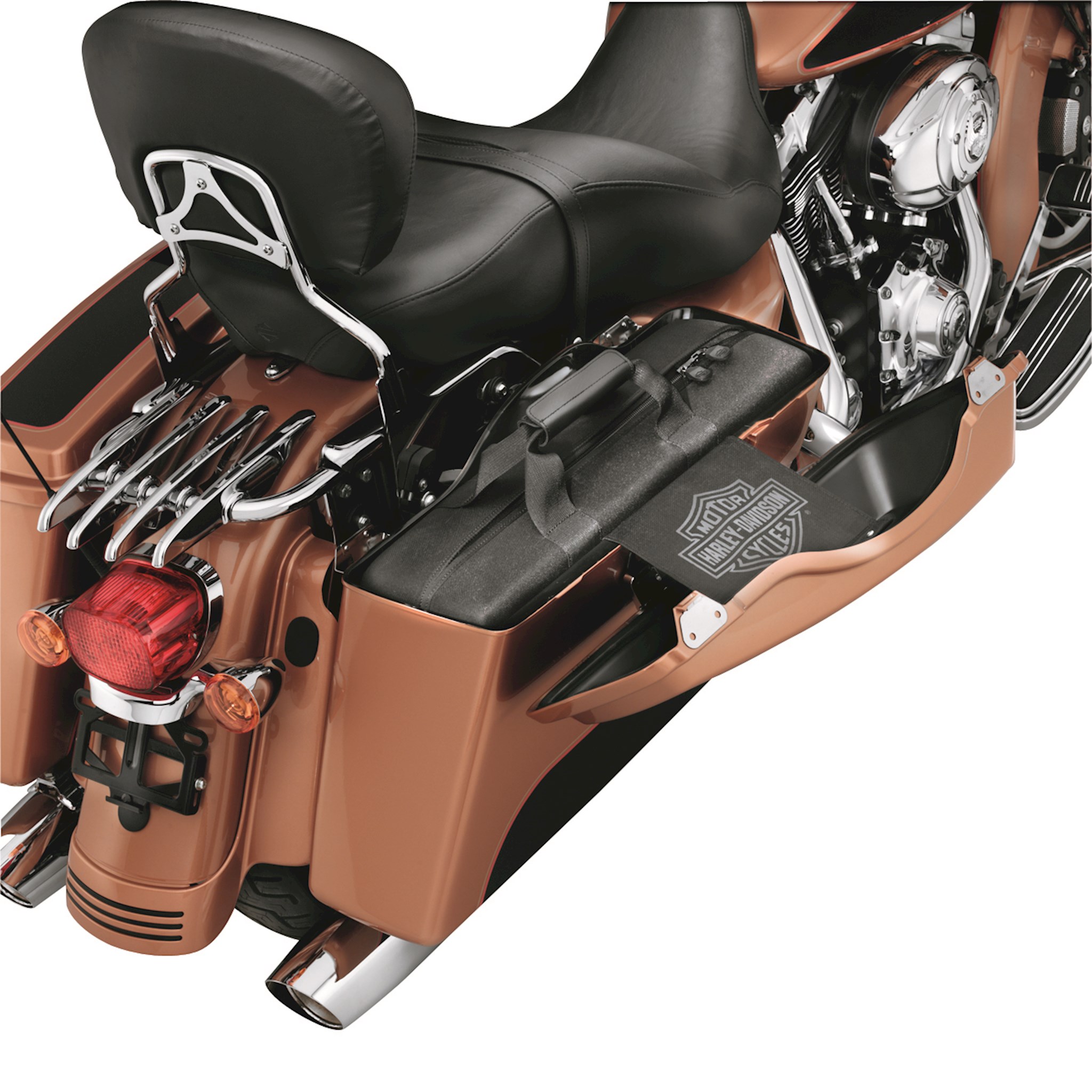 High-quality, molded luggage fits perfectly inside Touring model hard saddlebags. Luggage capacity: 890 cubic inches (each bag). Dimensions: 24.5" L x 9.0" H x 6.5" D.
