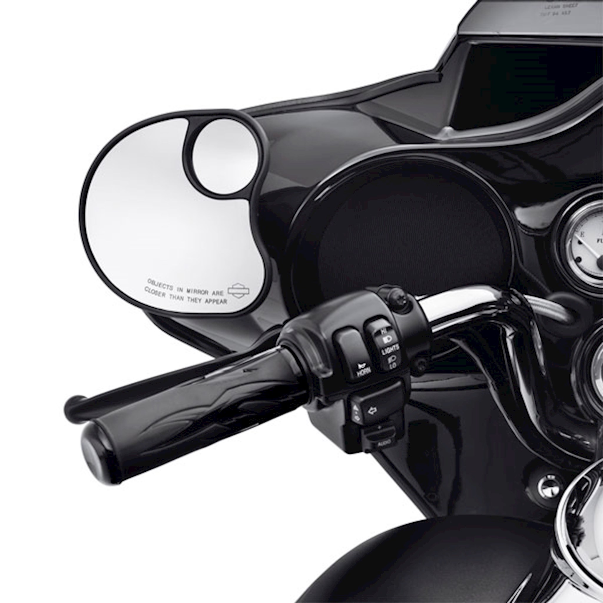 See even more of the world that you just passed. These exclusive-design Split Vision Mirrors minimize blind spots and provide a wide panoramic rear view of the left and right lane, and the road behind you. The mirrors feature a large primary panel for normal view, and a second outboard convex panel for a wider field of vision. Slightly larger than the standard-view Fairing Mount Mirrors, these Split Vision Mirrors offer the same full range of adjustability. A direct bolt-on replacement for standard-view Fairing Mount Mirrors, the kit also includes the hardware and mounting template required for easy and accurate installation on many models.