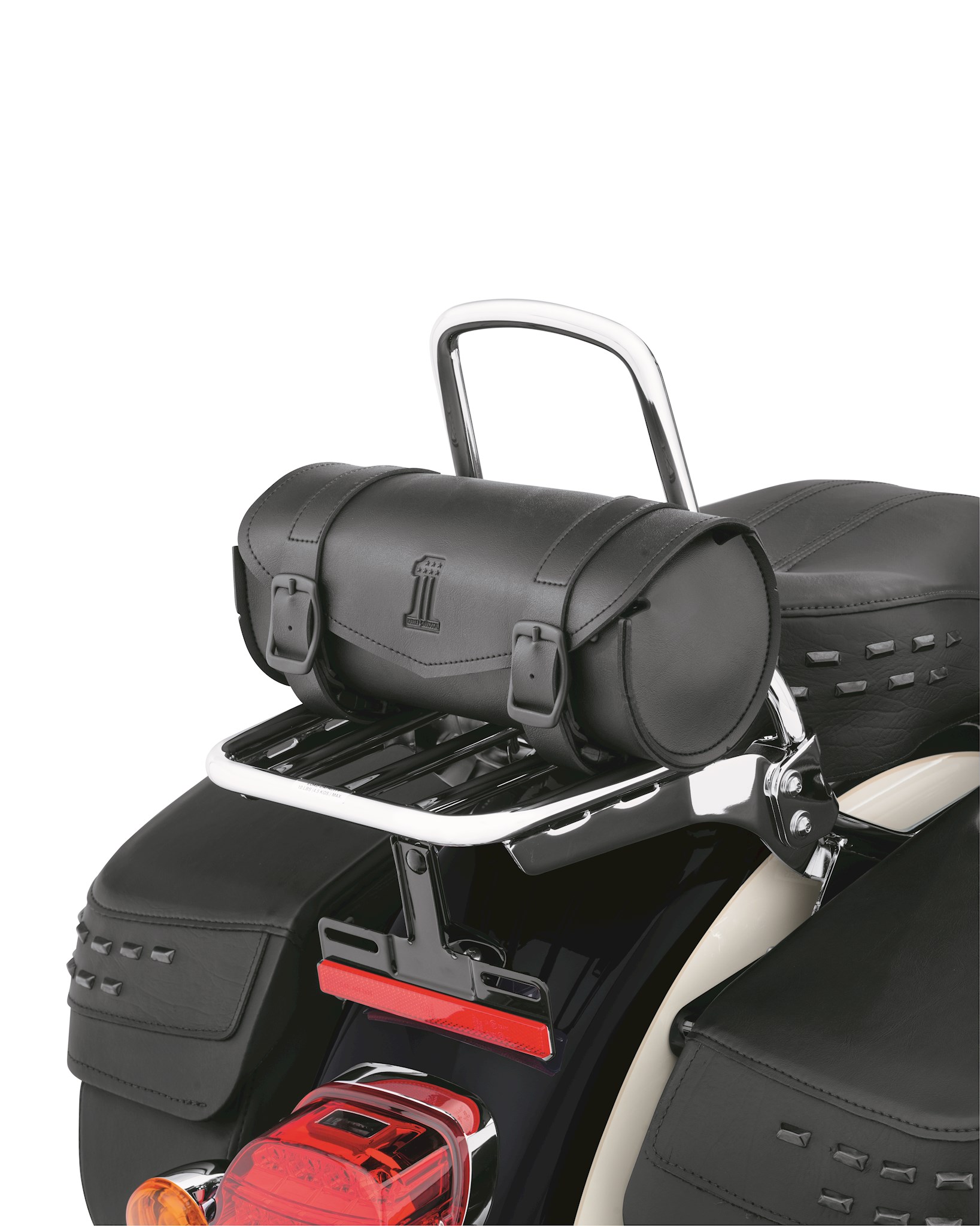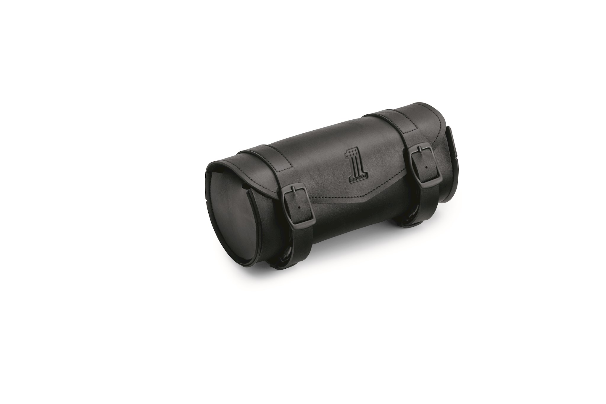 Made of ultra-durable leather-like synthetic featuring a debossed H-D #1 logo, the Black Standard Line Bags have a simple, black on black style that complements many styling directions and budgets. An internal reinforcement system maintains the bag’s shape over time. The MOLLE-style system of mounting loops accommodate hook and loop straps and allow for multiple mounting locations and orientations. The bags feature either matte black enamel buckles with hidden quick-detach buckles underneath or, a hook and loop flap closure. This Tool Bag features decorative, black enamel buckles under which are quick-release buckles for easy access and can be mounted to various parts of the bike including the sissybar, handlebars, down tubes or a luggage rack. This Tool Bag is constructed to handle the weight of tools. The bag measures: 5.25" in diameter x 11" long. Internal capacity: 165CI. Carrying capacity: 5 lbs.