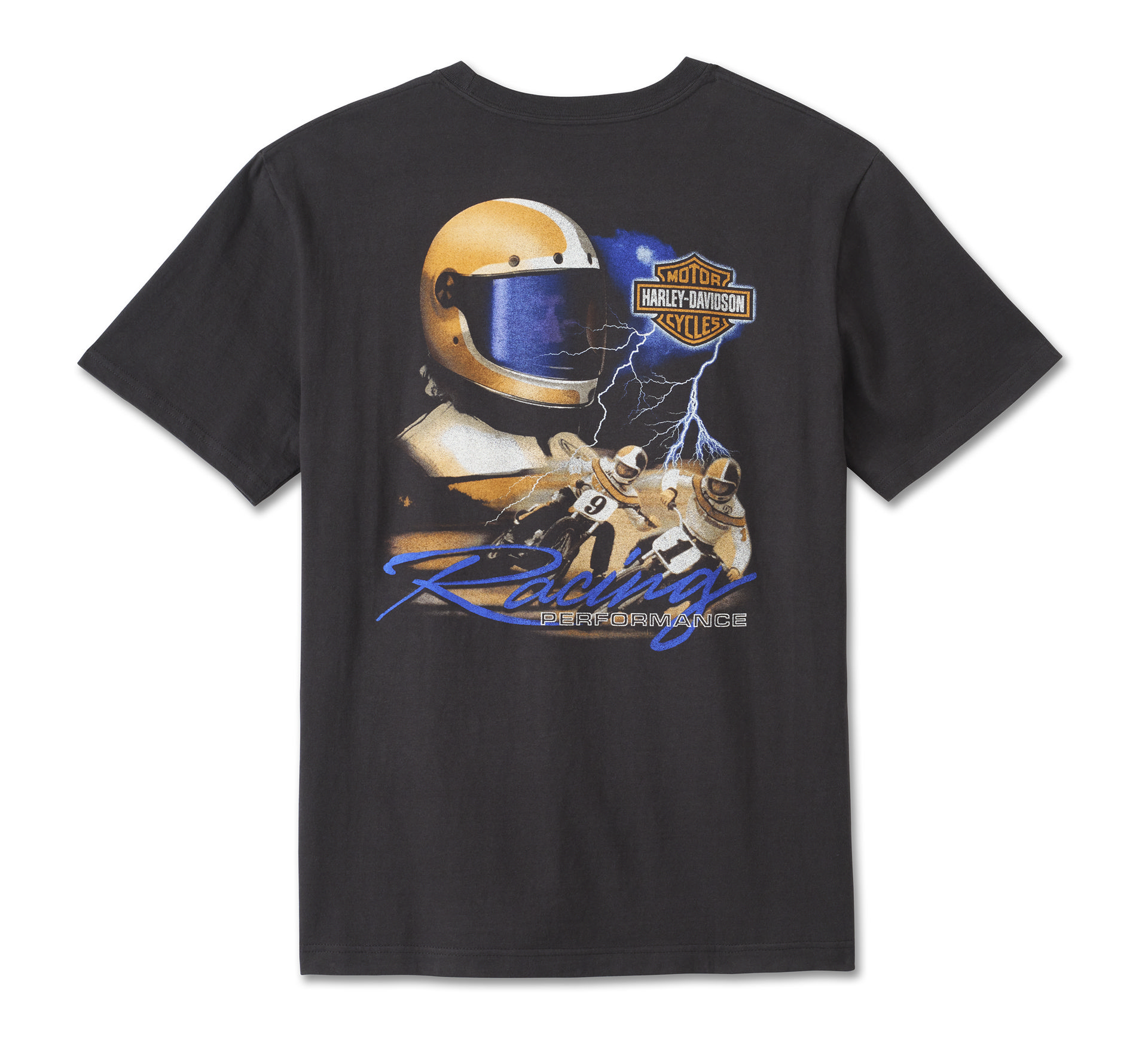 Adrenaline-aangevuurde prestaties uit ons racetijdperk uit de jaren '70 komen tot leven in deze limited edition. Ons H-D Night Rider T-shirt is gemaakt van ringgesponnen katoenen jersey en heeft een relaxte pasvorm. Dit T-shirt voor heren is afgewerkt met ons meest opvallende logo op de voorkant en op de achterkant een custom ontwerp geïnspireerd op racefoto's uit onze archieven. Pak de jouwe nu zolang de voorraad strekt.