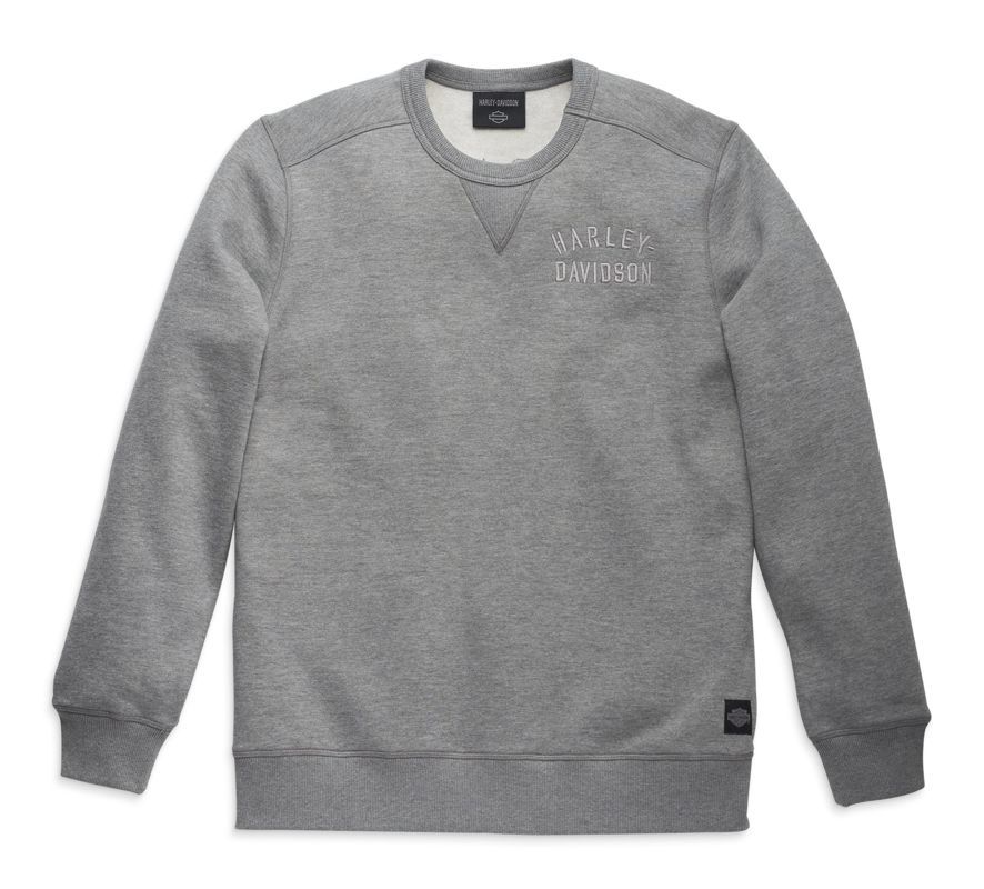 Staple Embroidered Sweatshirt - Heather Grey Maat: S Part Number: 96028-23VM/000S € 62,03 Van € 124,07 Het Limited Edition Staple Embroidered Sweatshirt is gelijke delen duurzaamheid en Harley-trots. Gemaakt van stevig katoen/poly fleece, dat duurzaam is geconstrueerd voor slijtage. Graphics zijn opzettelijk ingetogen, met onze geborduurde naam op de borst en rug. Dit sweatshirt is ideaal om over een T-shirt met graphics te dragen, of om in je zadeltas te stoppen voor een extra laag. Wees snel, want op is op. Materialen: 60% katoen, 40% polyester fleece. • Ontwerpdetails: Ribstof hals, manchetten en zoom. • Graphics: Geweven merklabel. Directe borduursels.