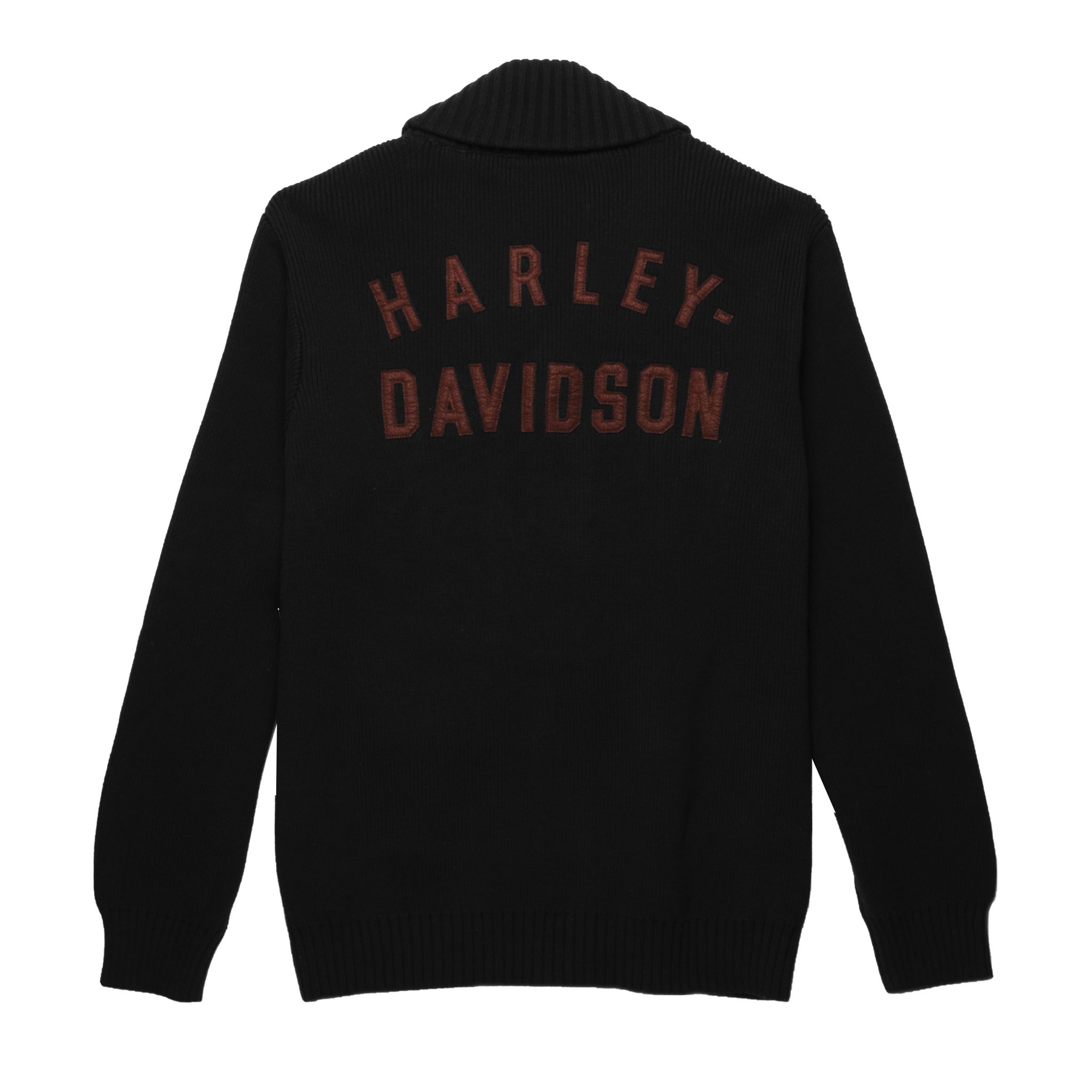 Een perfecte trui voor fans van tijdloze stijl en onze racing legacy. Onze Staple Cardigan is gemaakt van 100% katoenen ribstof voor ademende warmte en een getextureerde look. De sjaalkraag, knoopsluiting en paspelhandwarmerzakken zorgen voor een klassieke uitstraling, terwijl de ribgebreide halslijn, manchetten en zoom hun vorm behouden tijdens talloze keren dragen. De voorkant is minimaal gemerkt met ons geweven label, terwijl de achterkant een trotse vilten applicatie heeft die onze Harley-Davidson racekleding uit 1903 nabootst.
