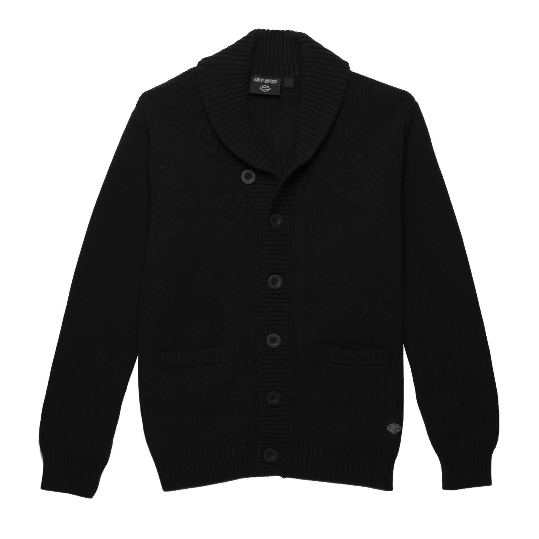 Een perfecte trui voor fans van tijdloze stijl en onze racing legacy. Onze Staple Cardigan is gemaakt van 100% katoenen ribstof voor ademende warmte en een getextureerde look. De sjaalkraag, knoopsluiting en paspelhandwarmerzakken zorgen voor een klassieke uitstraling, terwijl de ribgebreide halslijn, manchetten en zoom hun vorm behouden tijdens talloze keren dragen. De voorkant is minimaal gemerkt met ons geweven label, terwijl de achterkant een trotse vilten applicatie heeft die onze Harley-Davidson racekleding uit 1903 nabootst.
