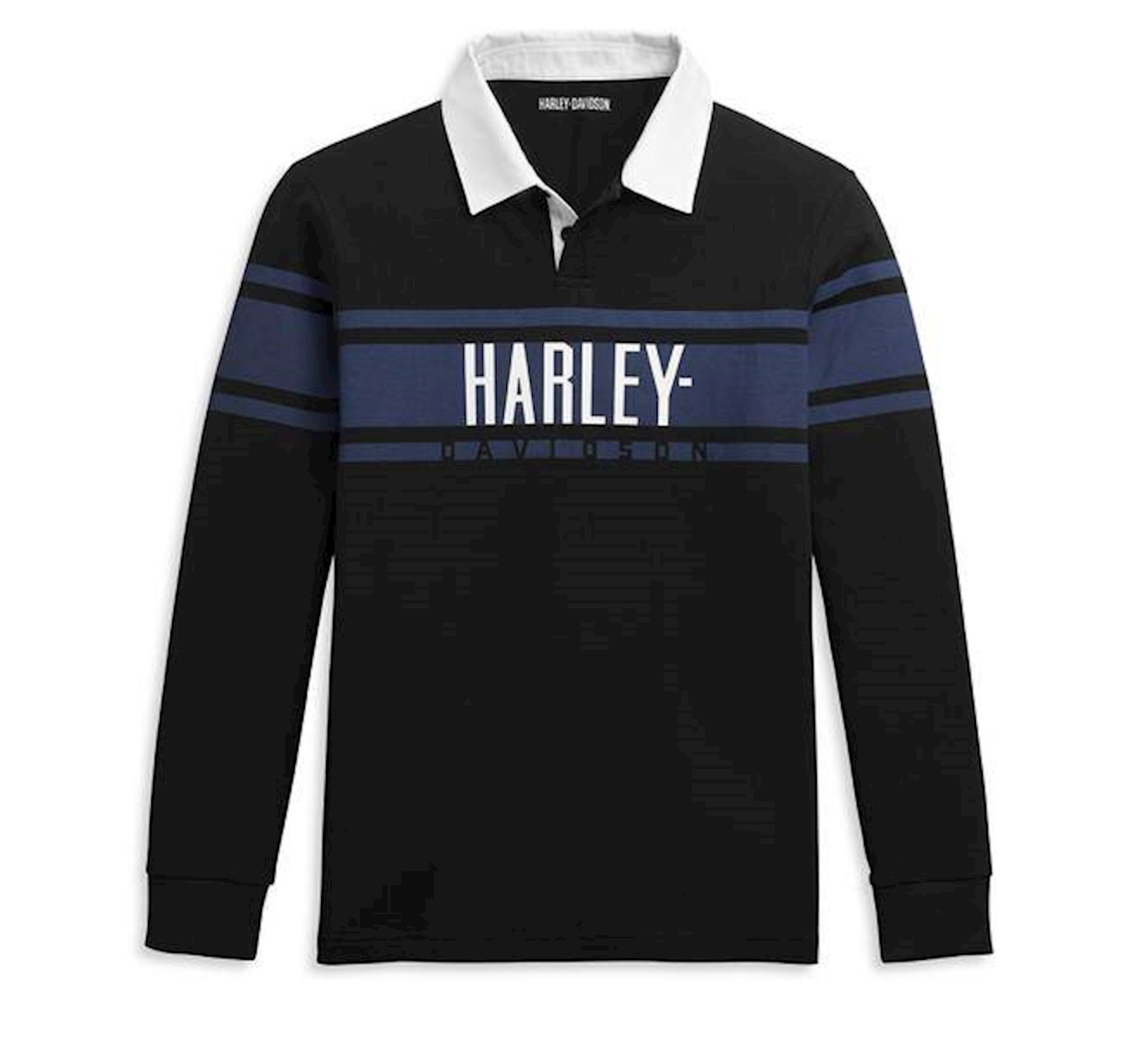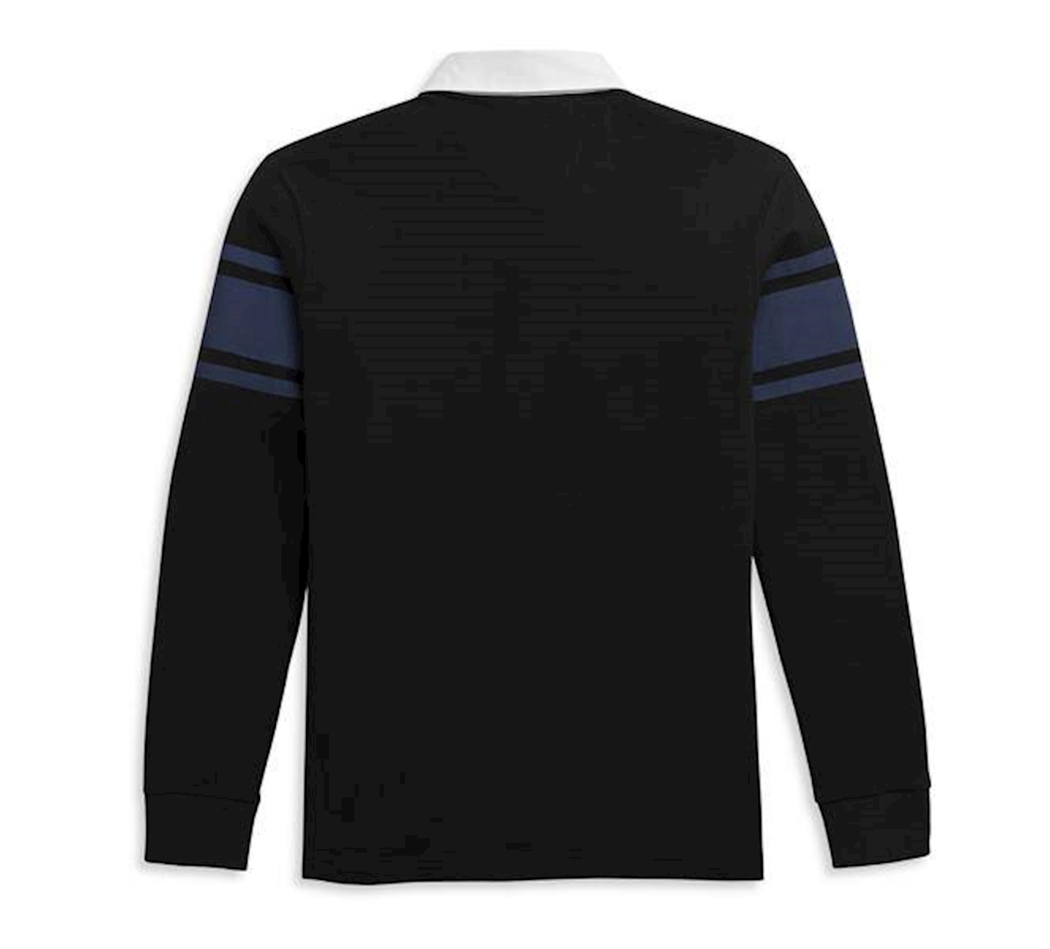 Materials: 100% Cotton Jersey. • Design Details: 100% Cotton Twill Collar and under placket, logo button closure, rib cuffs. • Graphics: Print.