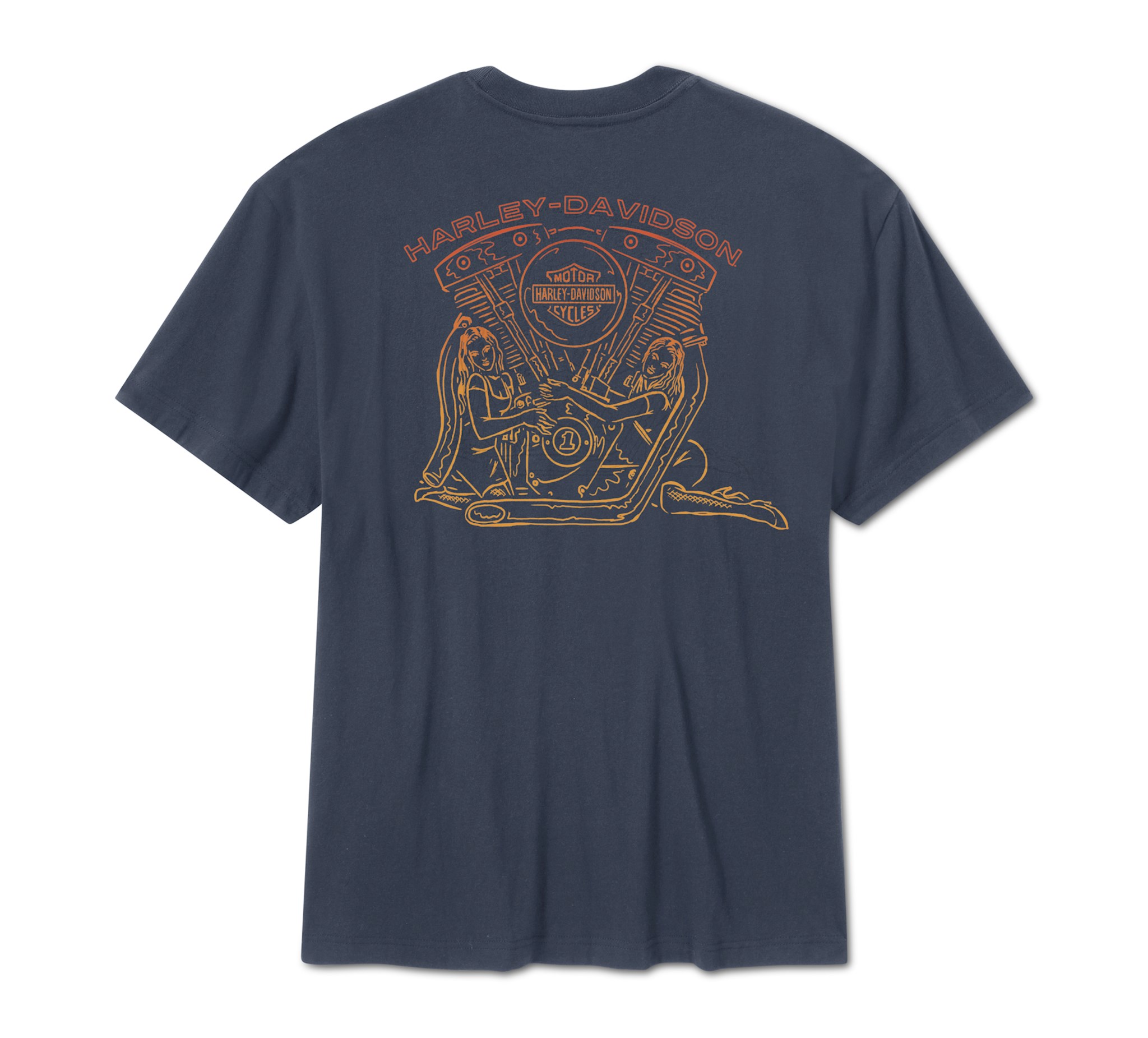 Het is dubbel feest op onze limited edition H-D® Engine Twins Short Sleeve Tee. Gemaakt voor langdurig comfort van ademend 100% katoenen jersey, heeft dit mannen-t-shirt een ontspannen pasvorm en een ribgebreide halslijn om de vorm te behouden. Hij is levendig afgewerkt met motor-artwork in een gradient stijl voor een echt unieke look. Bestel nu want op is op.