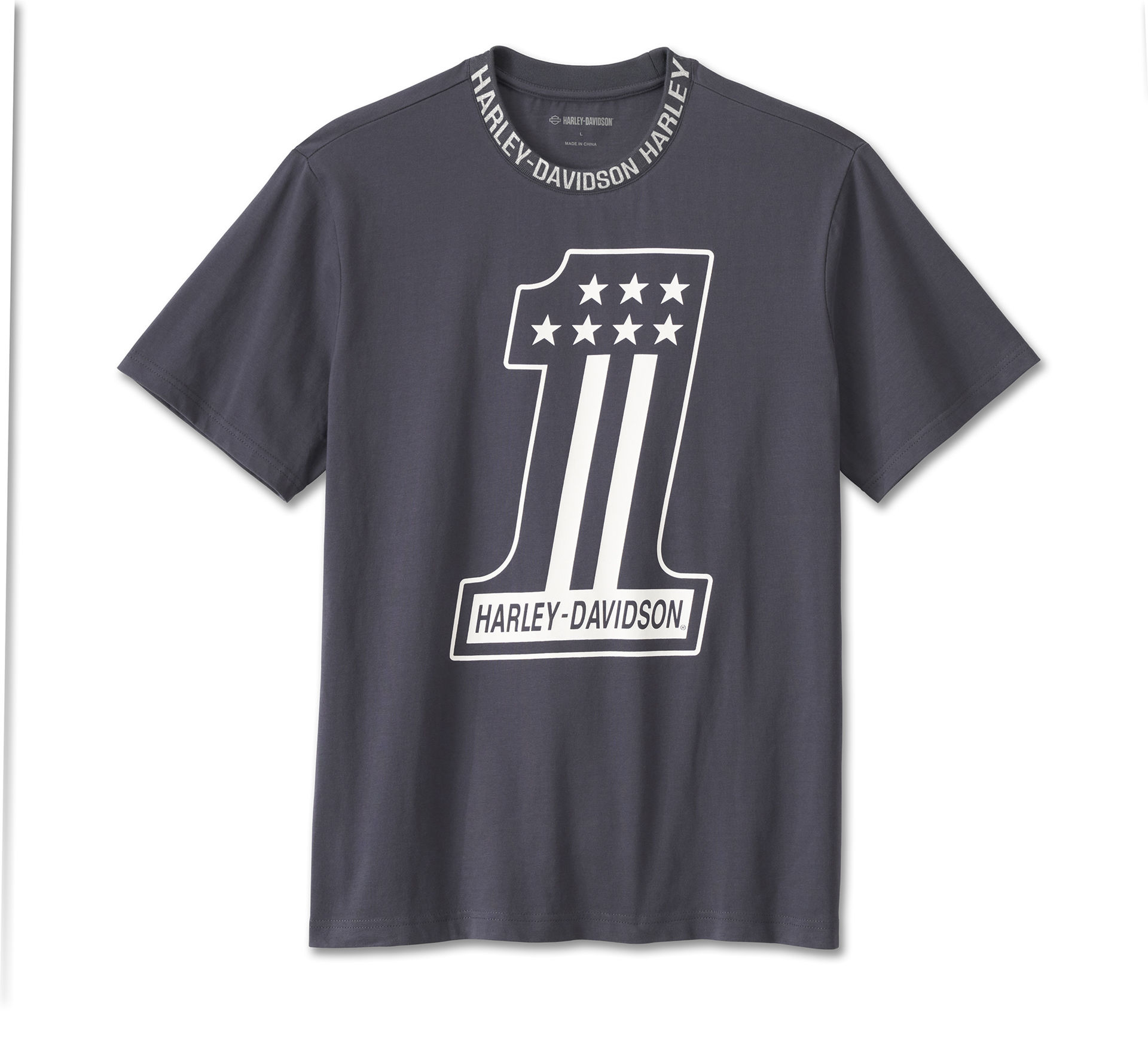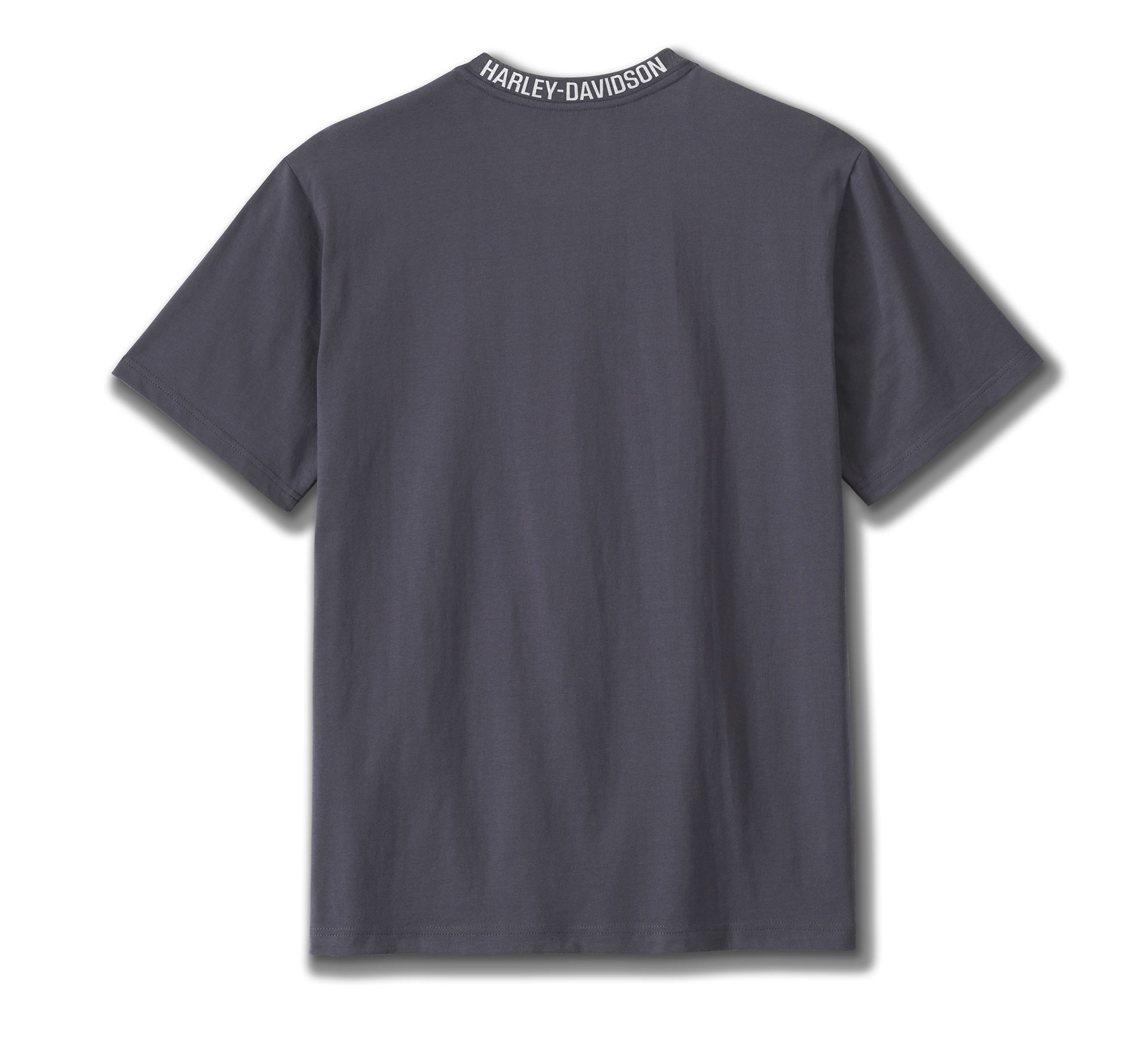 Relaxed through body. Tee hits below waist for length. 100% cotton heavyweight jersey. Intarsia knit neckline. Soft-hand print.