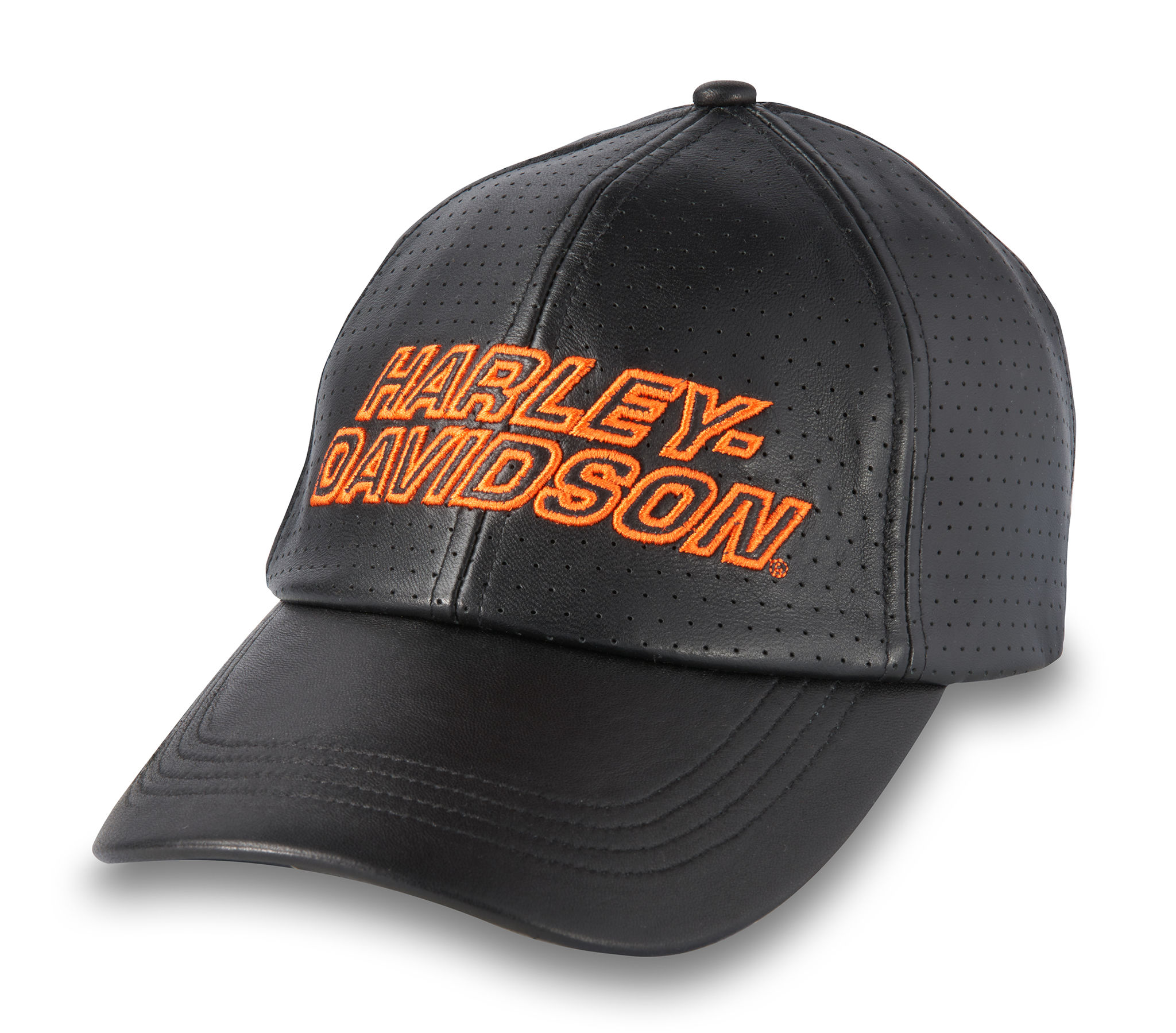 Enthusiast style gets an air-loving upgrade on our Limited Edition Factory Perforated Leather Baseball Cap. Crafted from supple sheepskin with an adjustable branded metal slider for your ideal fit. Its breathable, perforated build features a solid leather brim and leather appliqué applied with a pop of our iconic orange in the stitching. It’s a next-level Harley look you’ll want to get sooner than later since this seasonal style is in limited supply.