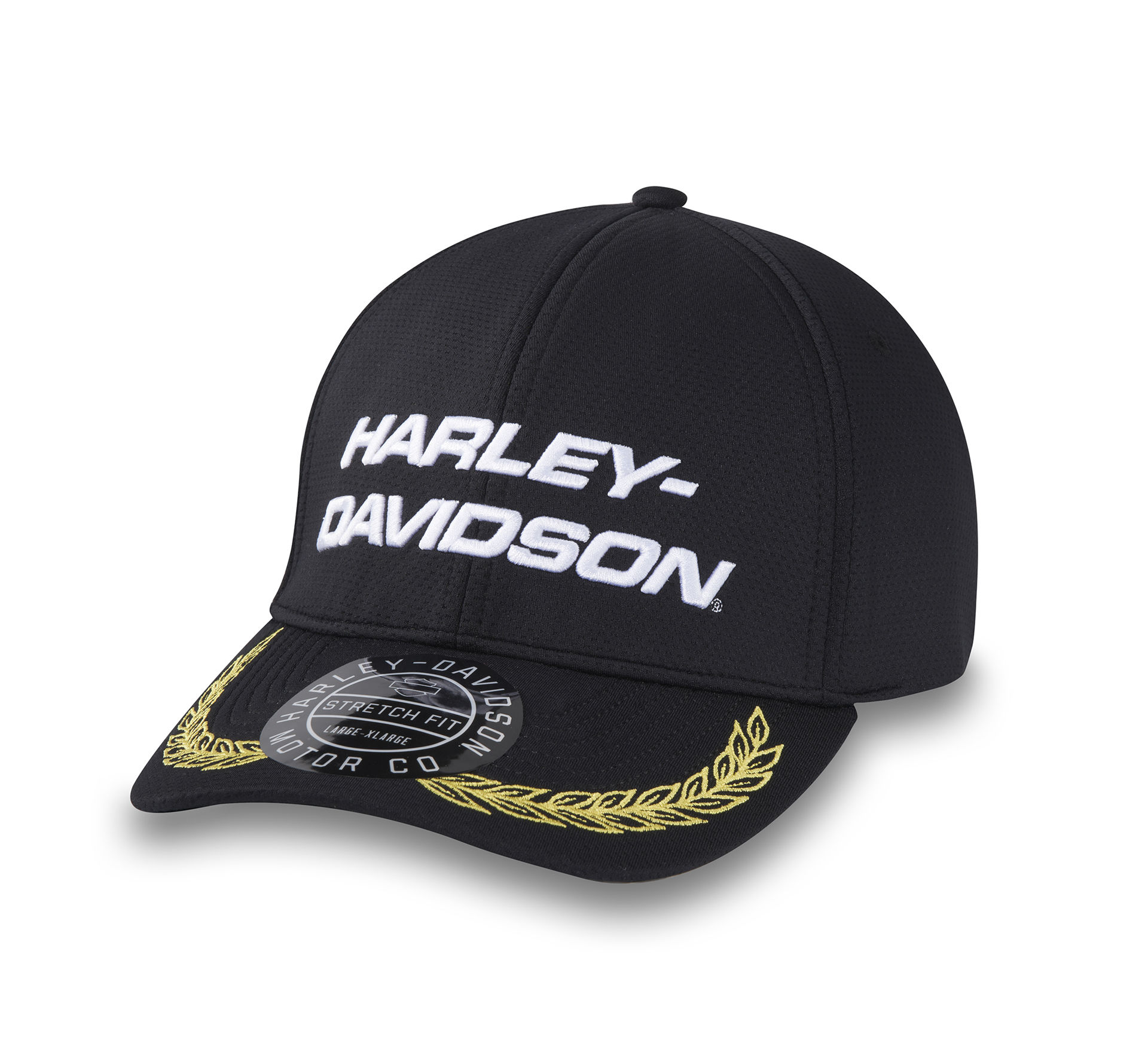 Race-inspired style takes a winning lap on our Start Your Engines Stretch-Fit Baseball Cap. Built from a moisture-wicking blend of polyester + spandex in a jacquard knit mesh for added breathability, this men’s hat features an interior knit elastic band and stretch-fit design for all-day comfort. Its embroidered graphics honor Harley-Davidson’s racing legacy, complete with laurel wreath artwork that symbolizes victory.
