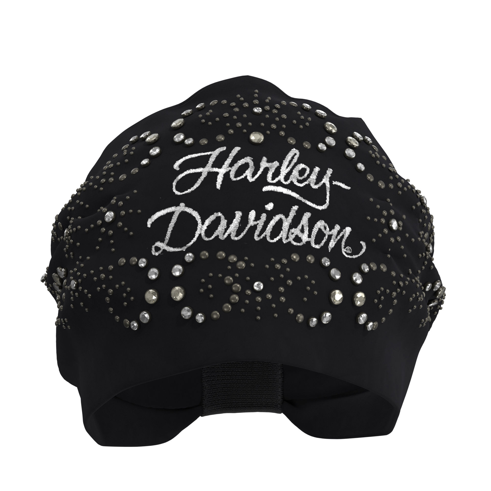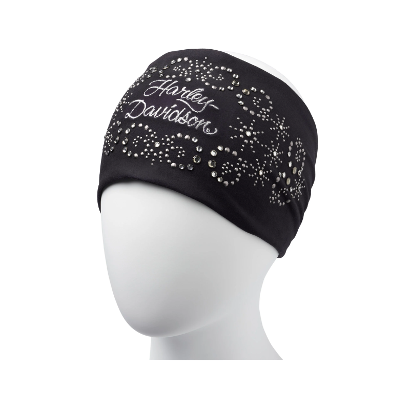 Voeg wat bling toe aan je probleemloze haardagen met de Studded out Performance-hoofdband. Het verbeterde ontwerp blijft op zijn plaats en is gemaakt van polyester met een vleugje spandex jersey voor zachtheid en stretch die niet aan je haar trekt of blijft haken. Dit opvallende H-D-item is voorzien van zilveren koepelvormige studs, strass-steentjes en metallic borduursels.