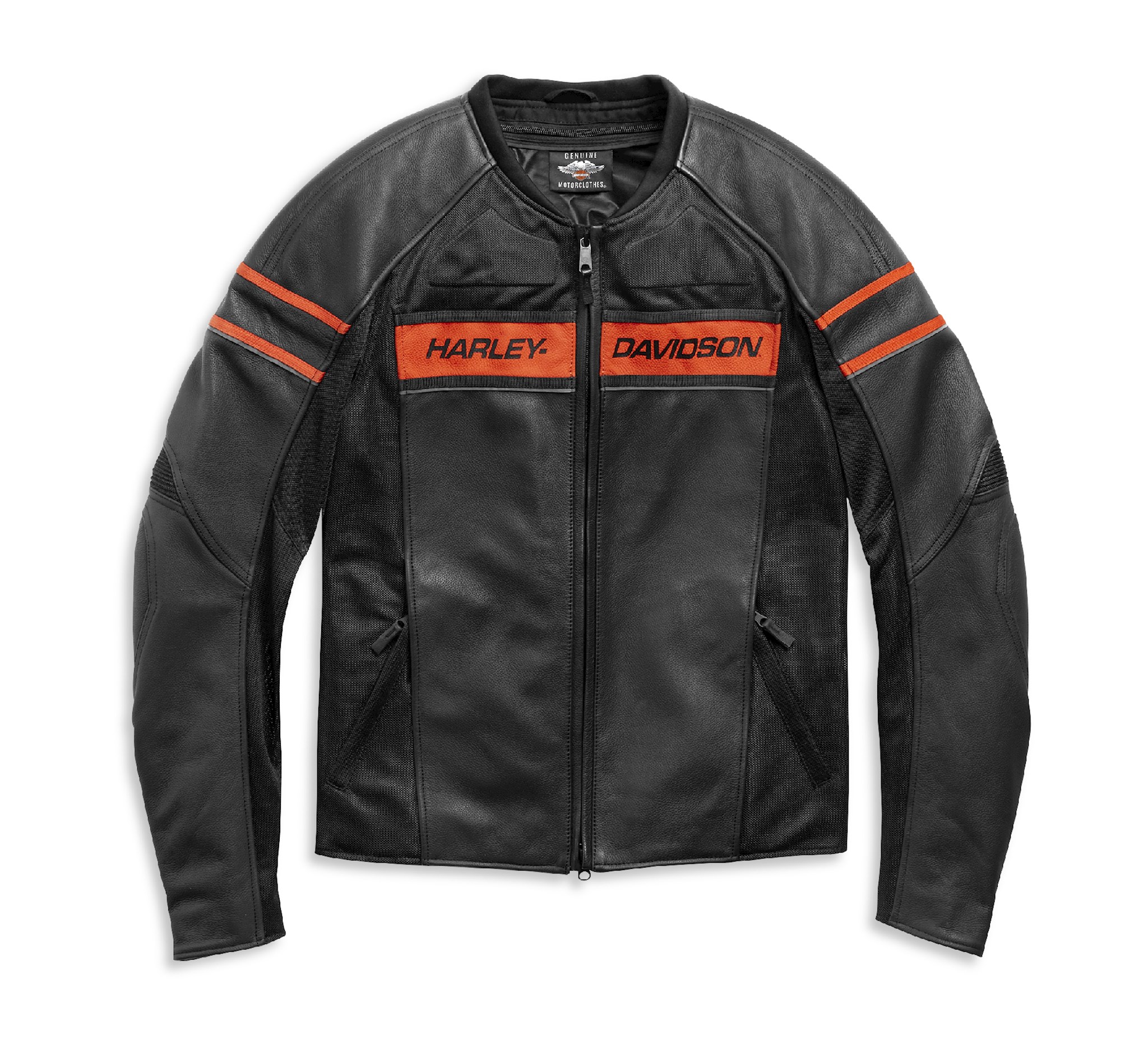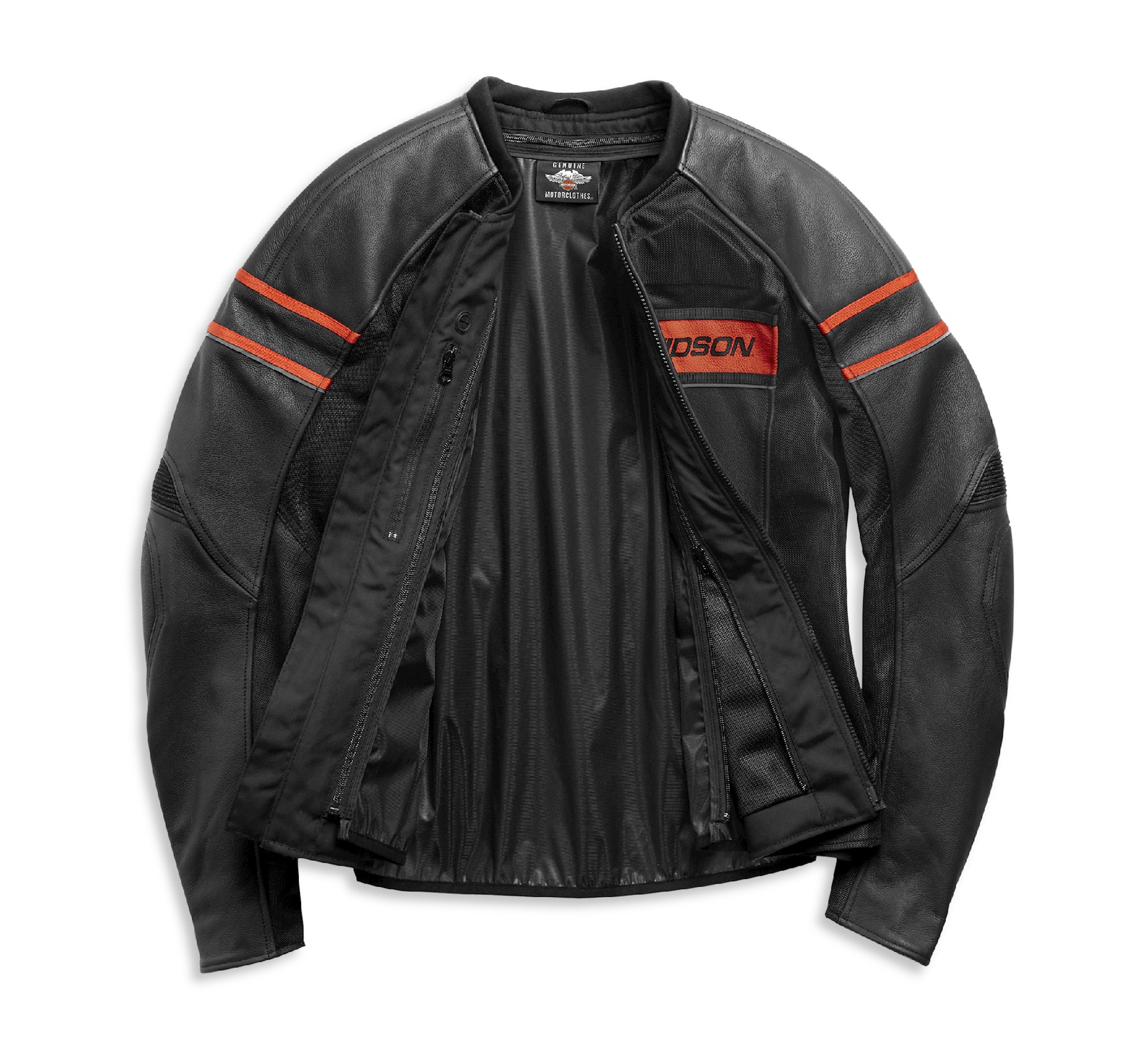 Stay Warm: Removable Windproof Liner. • Stay Cool: Strategically placed mesh for airflow. • Fit & Mobility: Powerstretch piecing. Front Chest is more narrow to replicate riding position of Streetfighter motorcycle. Action Back. • Ride Enhancing Features: Armor included at Shoulder & Elbow. Armor pocket at back. 3M reflectivity. Jacket to pant connection option. • Pockets: Zippered handwarmer POCKETS. Vertical interior pocket. • Materials: Heavyweight Cowhide. • Design Details: Print.