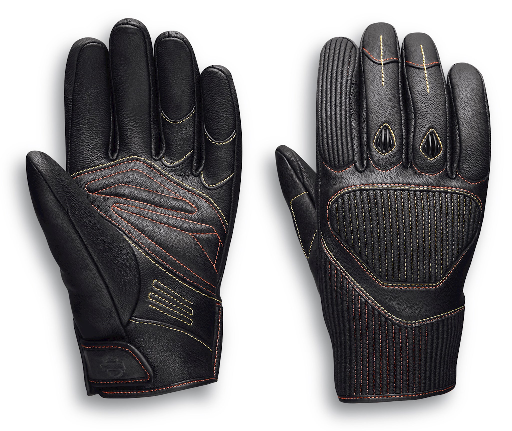 This gear is as revolutionary as the motorcycle that inspired it. The Watt Leather Gloves tie to the highly anticipated LiveWire, the first Harley-Davidson® electric motorcycle. Urban riders and commuters, take note of the functionality: venting fourchettes and Coolcore lining, aggressive curved fingers for reduced fatigue, and power-stretch panels for maximum dexterity. Graphics on these men's motorcycle gloves do not disappoint with color and amped-up styling worthy of the electrifying LiveWire. Original H-D men´s gloves Stay Comfortable: Coolcore lining and perforated venting fourchettes for cooling effect. Fit & Mobility: Ergonomic padded thumb and 45º pre-curved fingers. Power-stretch panels. Adjustable closure. Ride Enhancing Features: Reinforced padded palm. Reinforced finger panels. High-density finger protectors. Touchscreen compatible. Design Details: Embossed graphics. Materials: Goatskin leather. Polyester/elastane Coolcore lining. EN 13594 certified.