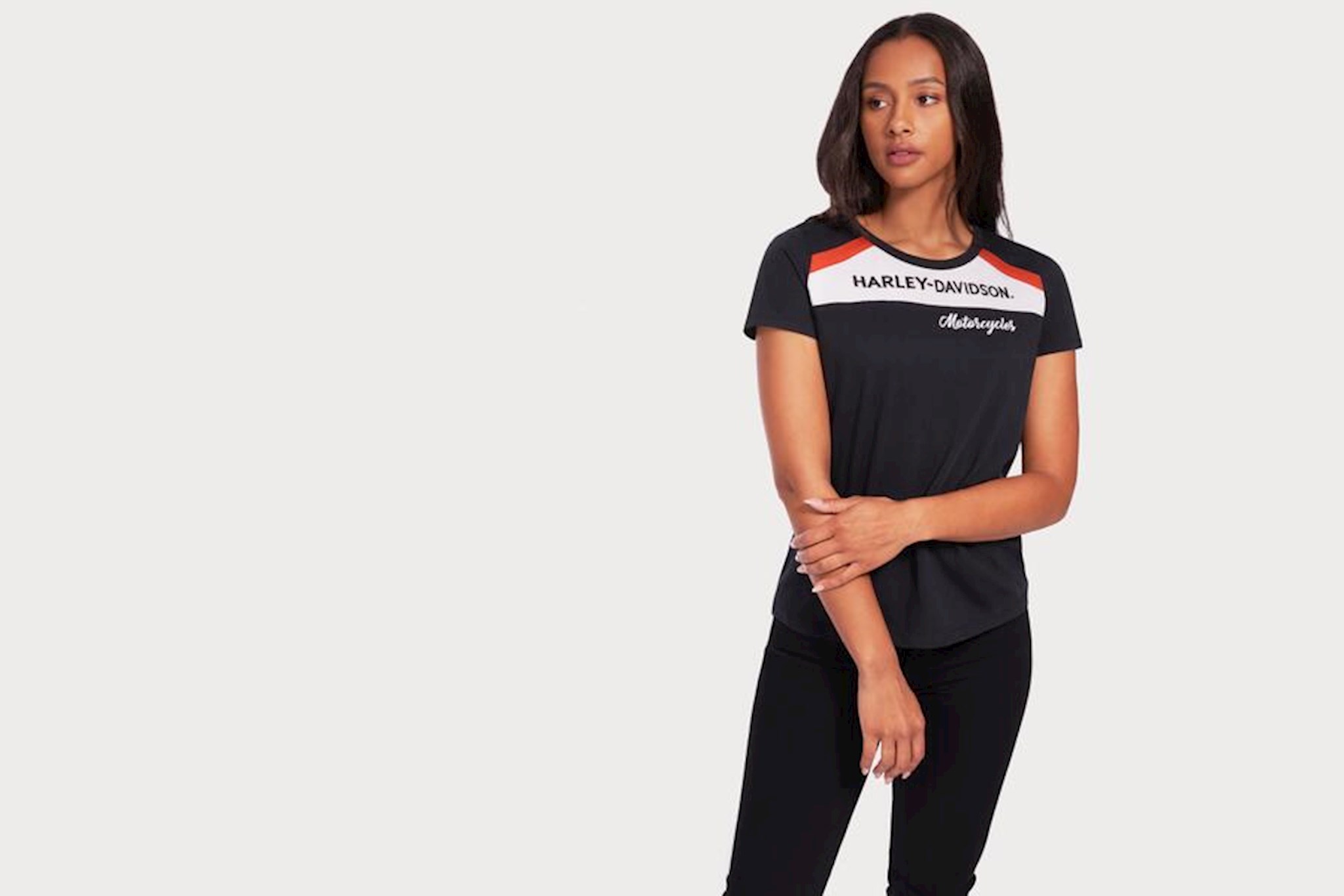 Sporty style + premium comfort = Harley-Davidson heritage. Take home that heritage with this Accelerate Stripe Knit Top. Made from 100% cotton jersey, this women’s layer includes eye-catching embroidered graphics. Flip it over for a sporty detail—contrasting racing stripes from neck to hem.