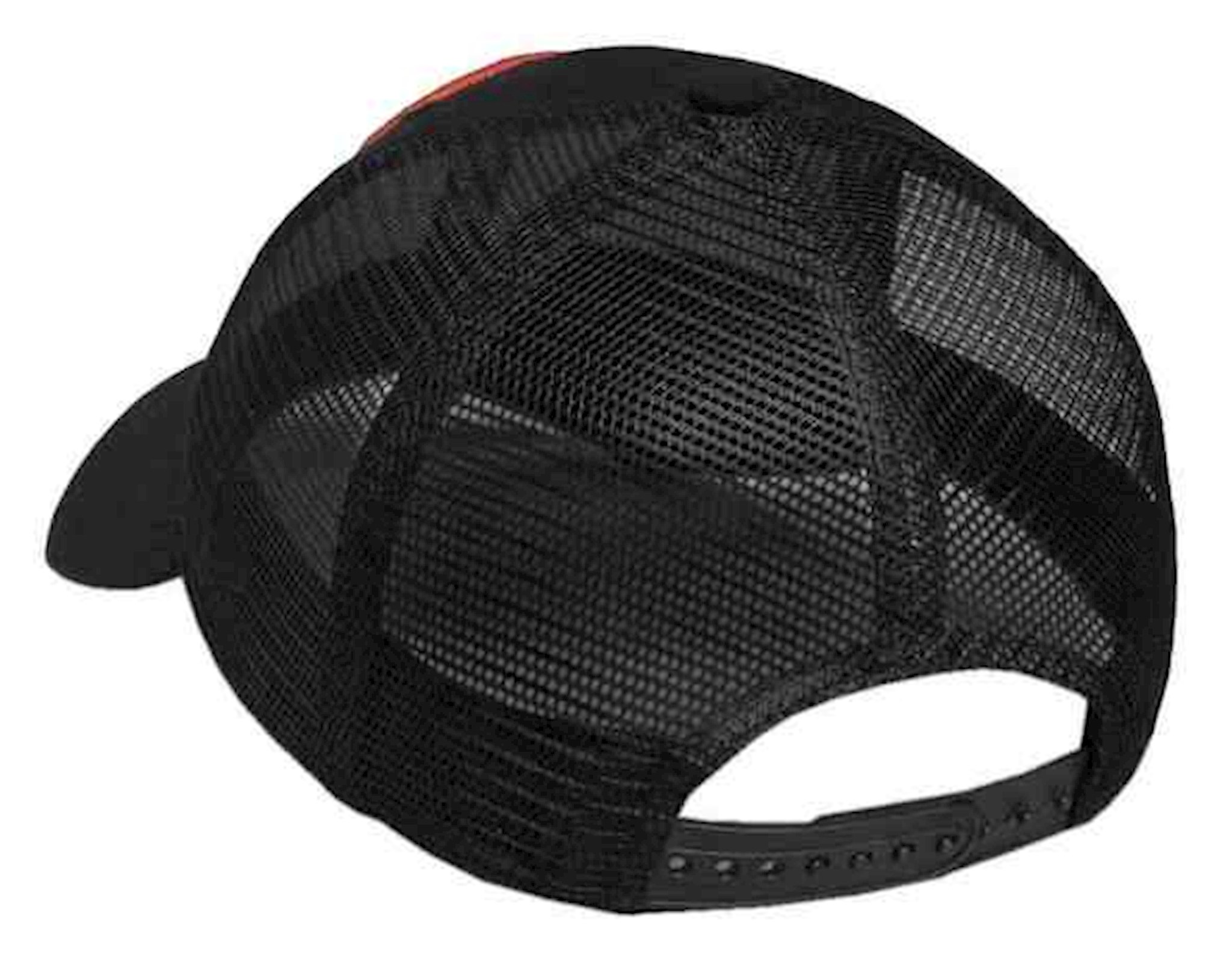 Harley-Davidson® Orange Skull Trucker Cap Made of 100% polyester mesh back Embroidered patch on front Adjustable snap back closure Black