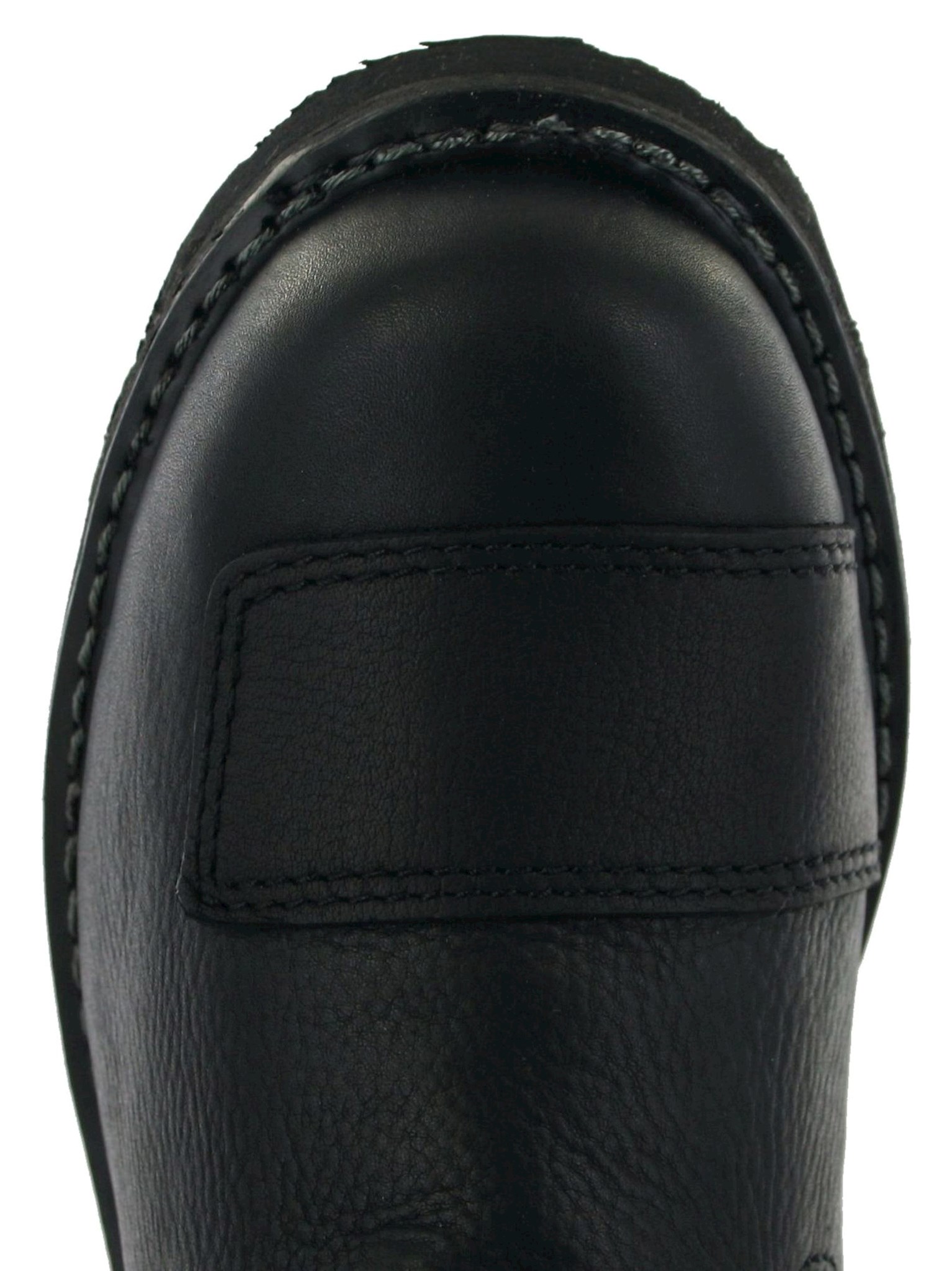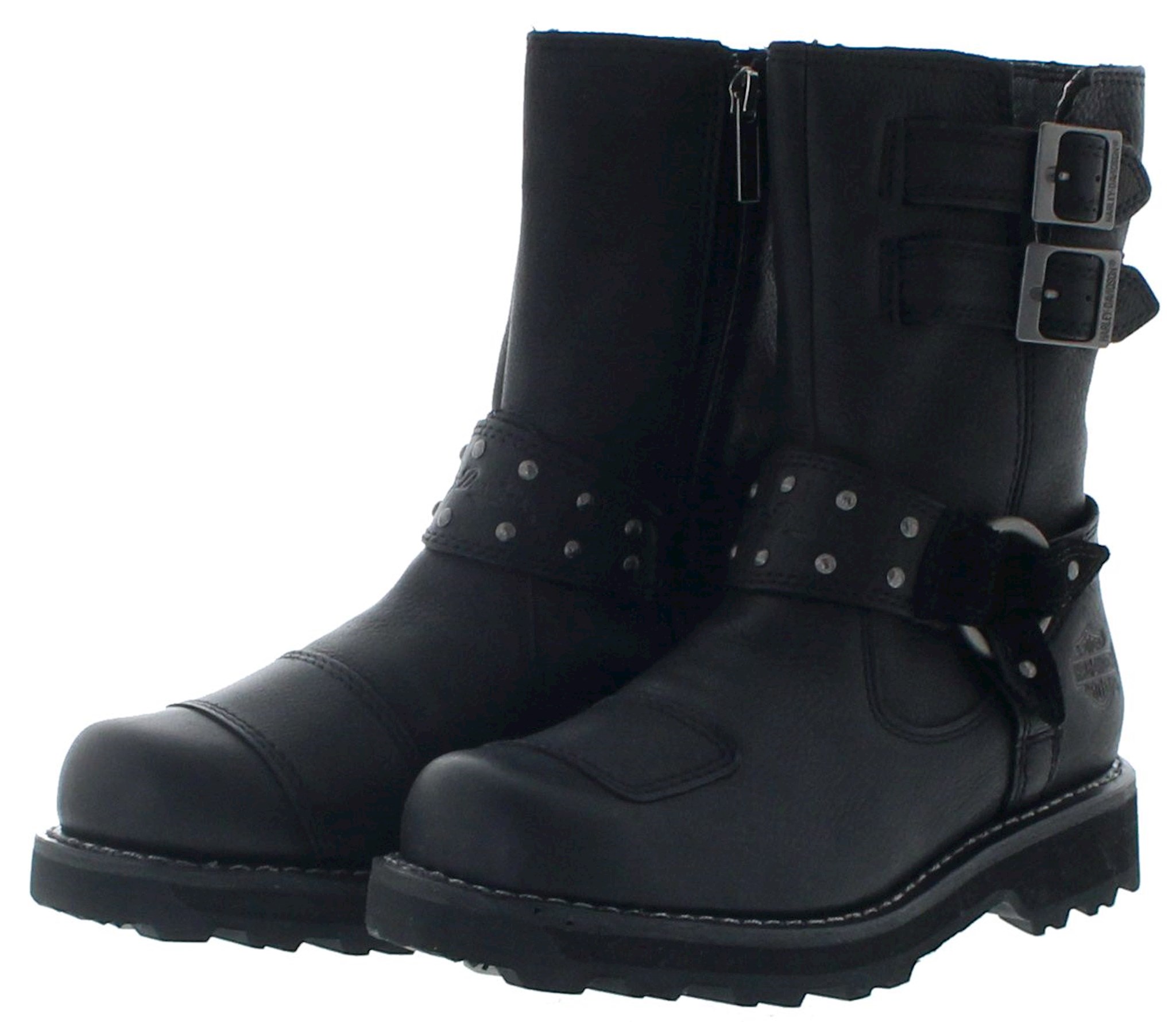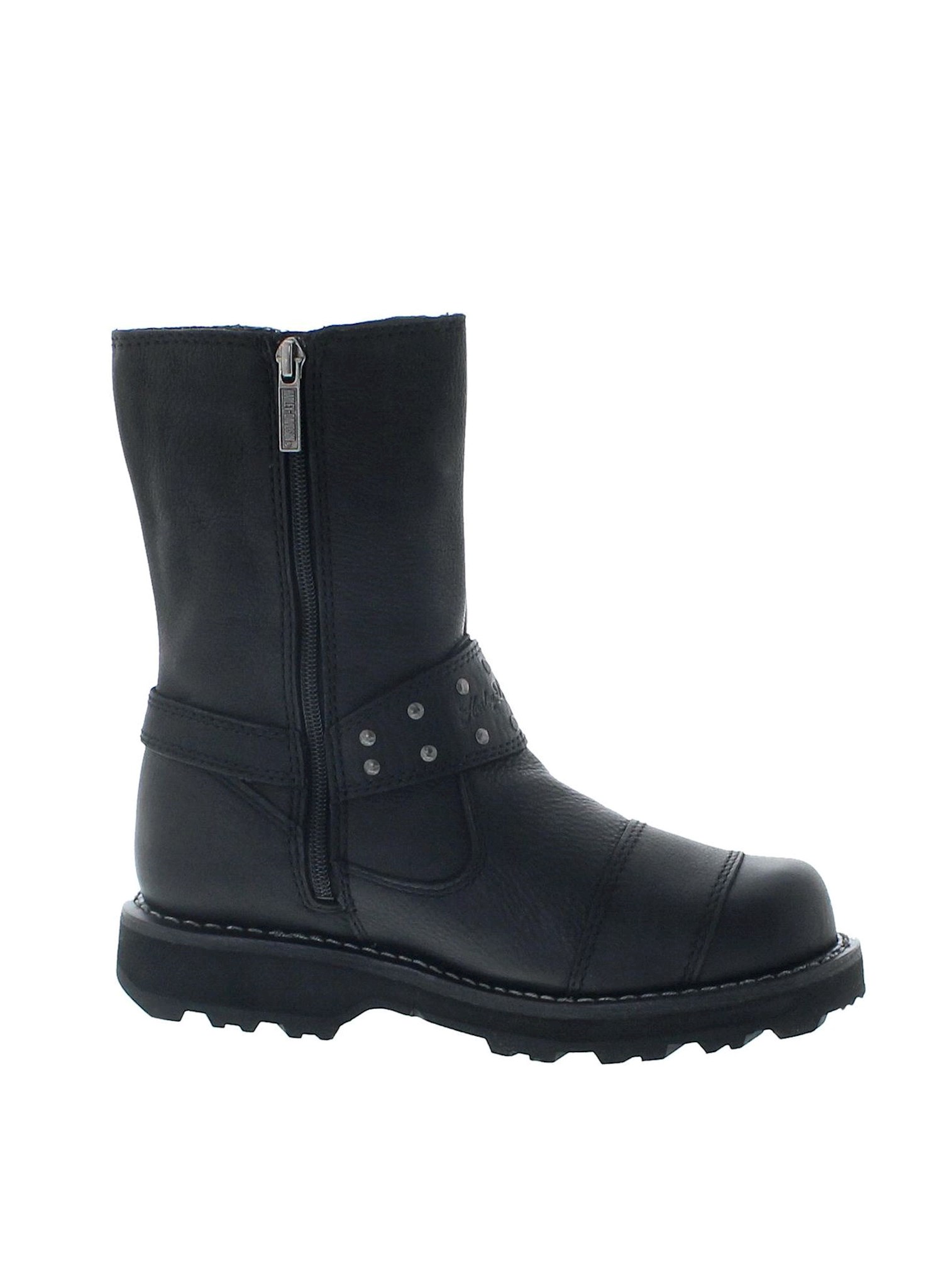Modieuze dames enkellaars met binnenzool en binnenritssluiting. Binnenin: Het complete interieur is gemaakt van een ademende Soft Mesh voering. De schokabsorberende binnenzool is niet vervangbaar. Speciale kenmerken: De laarzen zijn CE-gecertificeerd volgens de DIN-norm EU ISO 13634-2015. In geval van een ongeval moeten de motorlaarzen de voeten, eventueel de enkels en ook een deel van het scheenbeen tot op zekere hoogte beschermen. Deze hebben geen invloed op de bediening van de motorfiets of de bediening van de voethendels. De norm EN ISO 13634-2005 definieert de basisvereisten. De Europese norm heeft betrekking op twee prestatieniveaus op het gebied van bescherming: Prestatieniveau 1 - Minimumniveau/geplaatste laarzen bieden bescherming bij een ongeval en optimaal comfort. Prestatieniveau 2 - Hogere prestatie-eisen / veterschoenen bieden bescherming bij een ongeval en optimaal comfort bij een hoger gewicht. De D86021 EDDINGTON CE heeft de volgende prestatie-eisen: FO - Oliebestendige buitenzool: vermogensniveau 2 SRA - slipweerstand: vermogensniveau 2 B - vochtdoorlatend: krachttrap 1 Uitvoering: De welted Harley-Davidson MARMORA CE Black laars is gemaakt van een zeer duurzaam gewaxt rundleer (FULL GRAIN LEATHER). De rubberen buitenzool is oliebestendig en kan ook achteraf worden opgelost. De slijtage van de zolen wordt verminderd door de verwerking van speciale rubbersoorten. Om het instappen te vergemakkelijken is er een 20 cm lange binnenrits in verwerkt.