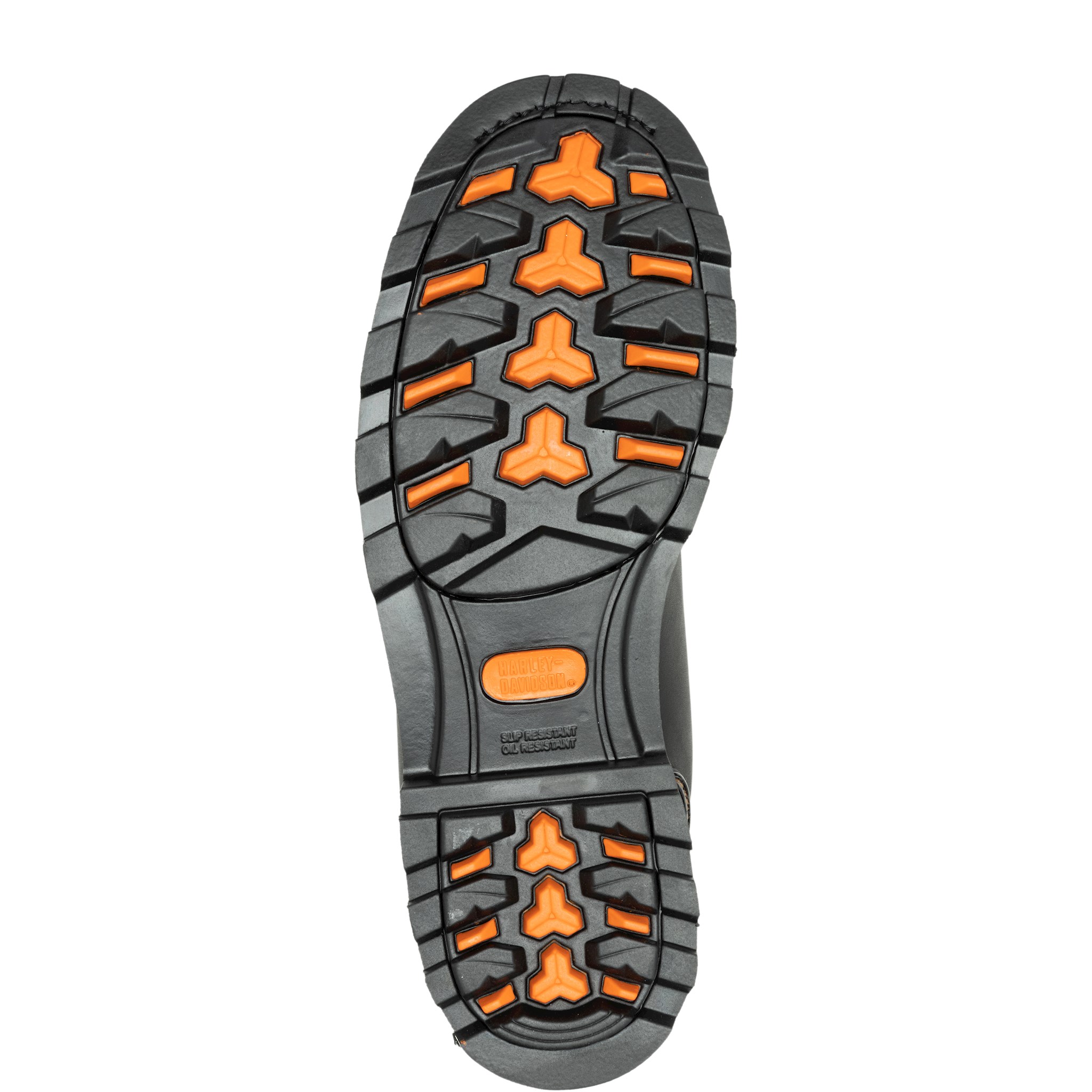 UPPER: Waterproof full grain leather. • LINING: Breathable Hydro-Guard™ waterproof. membrane. • SHAFT HEIGHT: 6” / HEEL HEIGHT: 1.5”. • OUTSOLE: Rubber. • CONSTRUCTION: Goodyear welt. • EU SIZES: 40-46, UK SIZES: 6-12. • D30® ankle protection. • 3M™ reflective piping. • Abrasion resistant finemould panels. • Heat resistant leather upper. • ShockAbsorbers Twin Pad™ comfort technology.