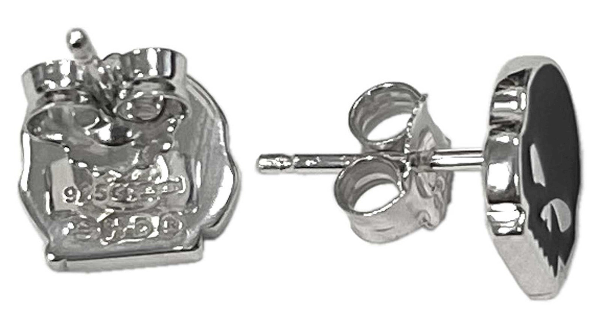 Harley-Davidson® Women's Black Enamel Willie G Skull Post Style Earrings HDE0488. Features a clean Willie G Skull design in black enamel. These earrings are hand-crafted with the highest attention to detail and quality, utilizing the finest materials. Wear these earrings for instant shine.