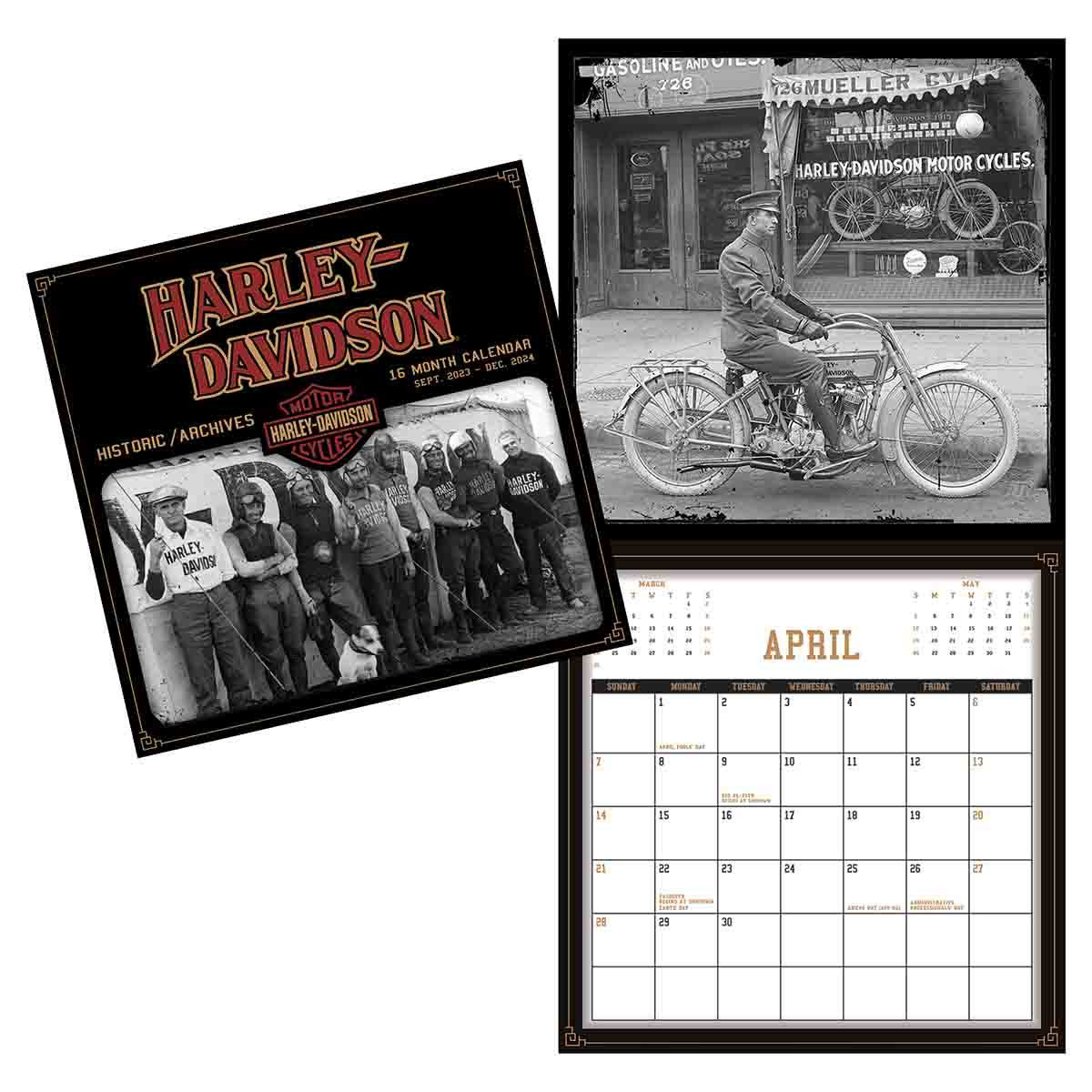 2024 Wall Calendar featuring Harley-Davidson archival photos. 16 months: September 2023 - December 2024. Dimensions: Folded 12" x 12" / 31 x 31 cm. Open 12" x 24" / 31 x 61 cm.