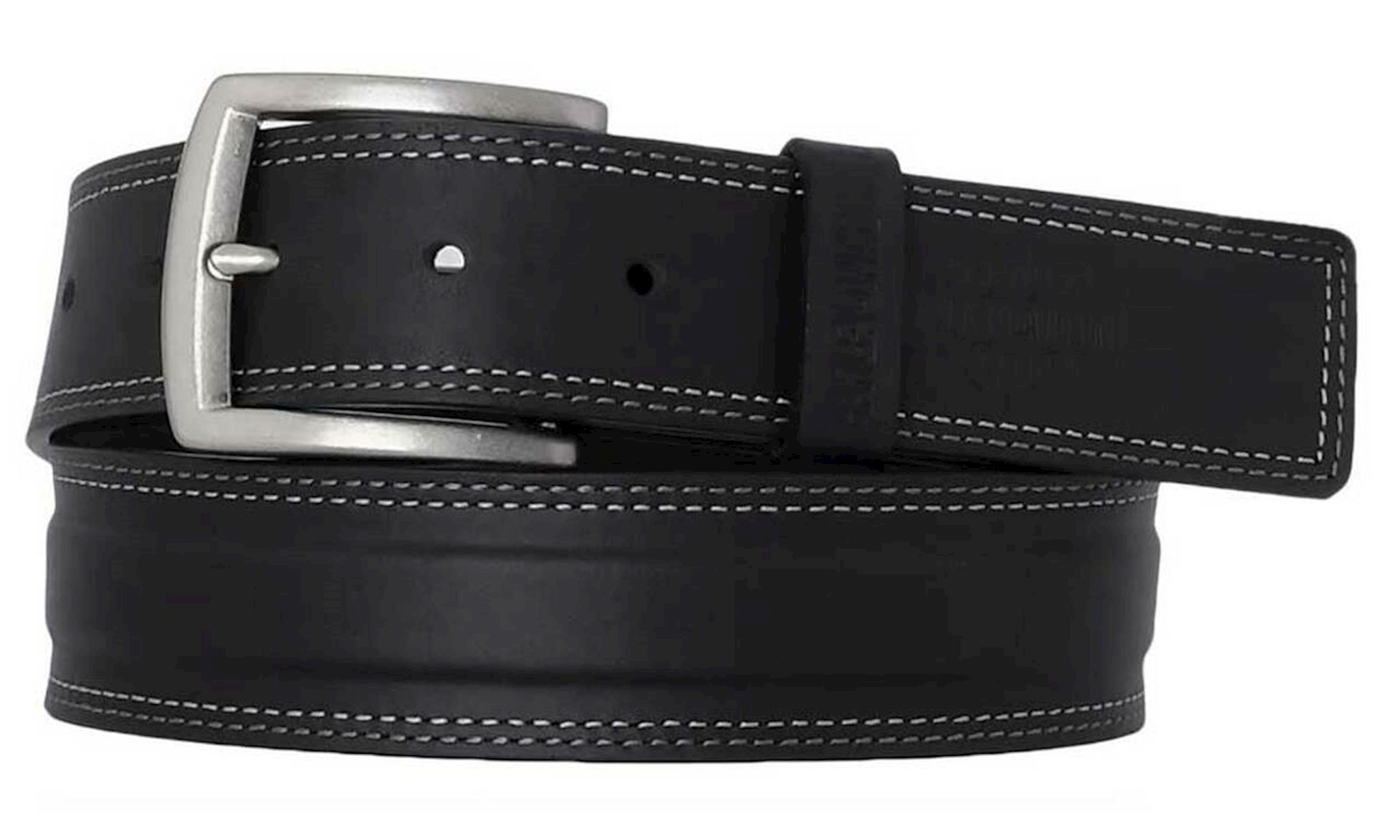 Harley-Davidson® Men's One Lane Belt, HDMBT11704-BLK. This belt is tough and ready for the ride. Not an inch of faux leather on this belt, constructed from high-quality Genuine cowhide leather with a smooth texture. Embossed Bar & Shield logo on belt end. Contrasting white and gray stitching, giving this belt a clean and classic look. Antique nickel finish on buckle. Excellent quality leather belt, made for those bikers who want the best of everything! Interchangeable buckle lets you swap out for another belt buckle whenever you want. Standard width: 1.5".