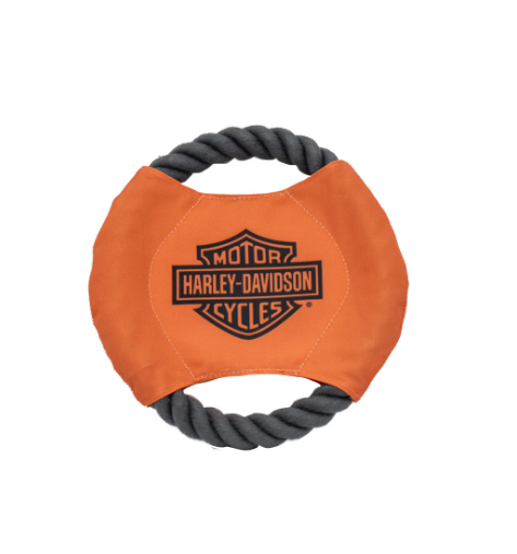Rope Disc toys features circular rope and waterproof cloth center with Bar & Shield logo. Dimensions: Small: 6" diameter / 15 cm Note: Product intended for pets only. Pets should be supervised while using this item. Replace if any part becomes torn or detached.