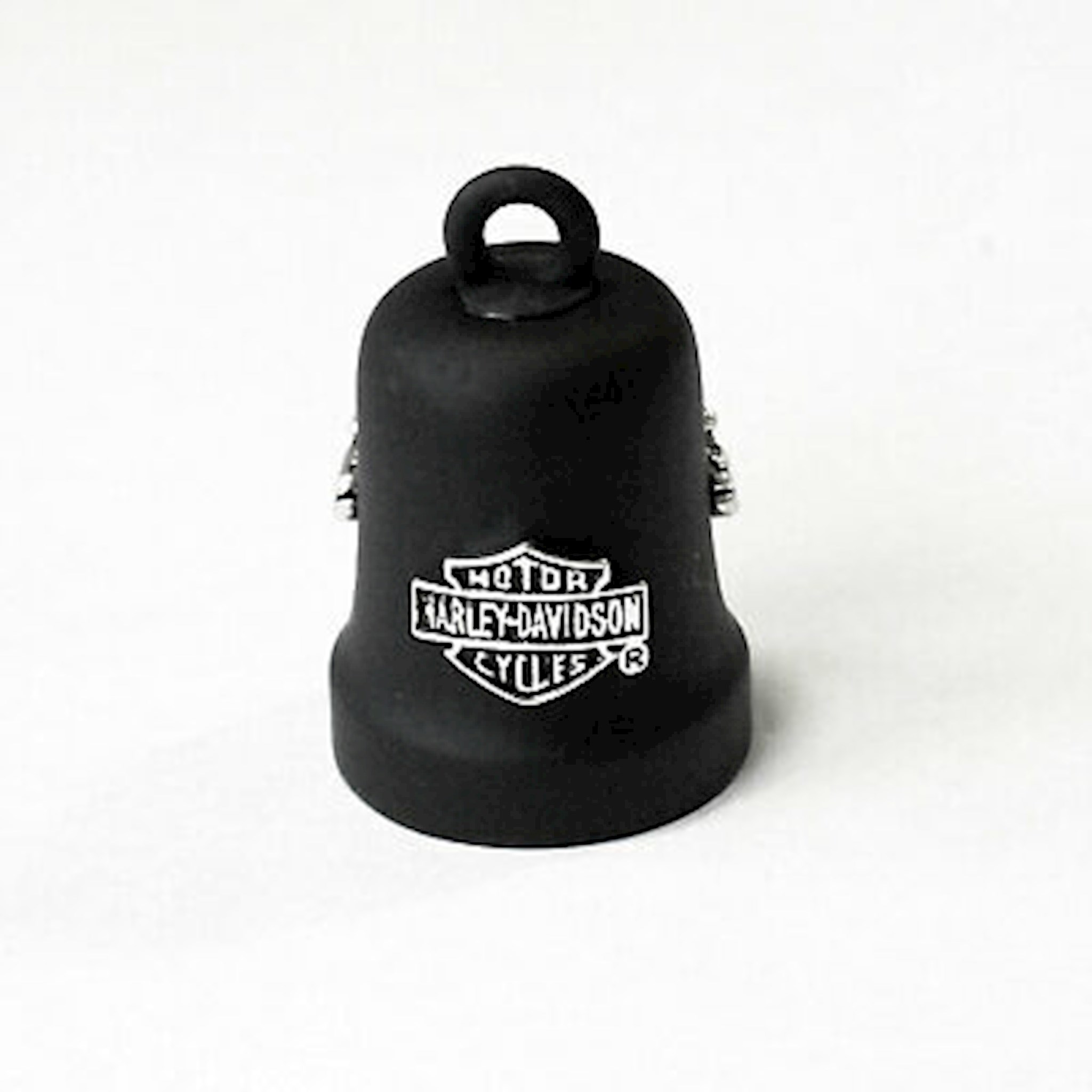 Harley-Davidson® Bar & Shield Piston Ride Bell. The bell is made out of metal. Includes ring for hanging and felt pouch with legend card.