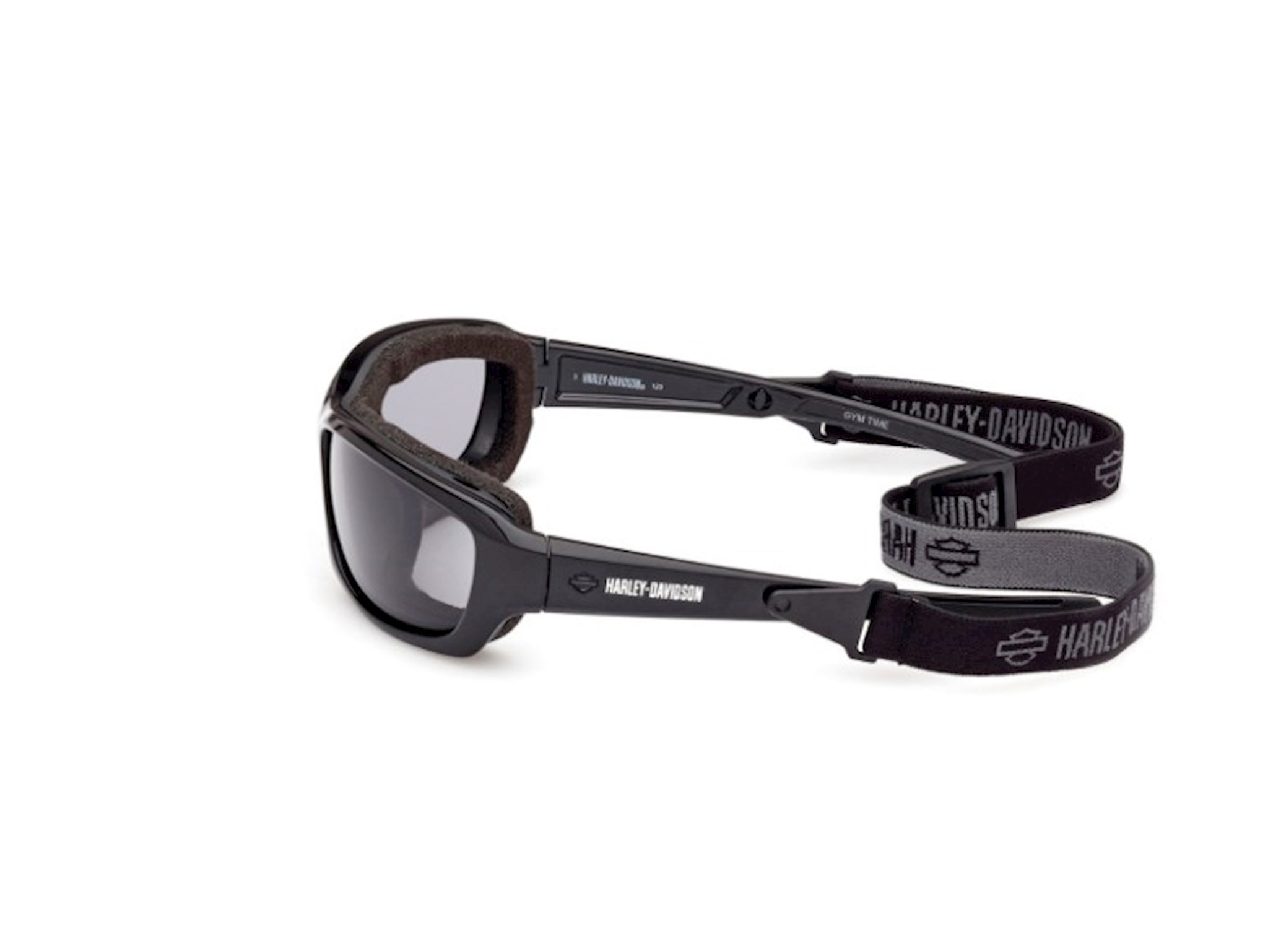 ANSI rated for on-the-bike use. Black Frame. Snap in adjustable headstrap. Kolor up gray color enhancing lens with light-adjusting, and anti-fog. H-D Logo at each temple.