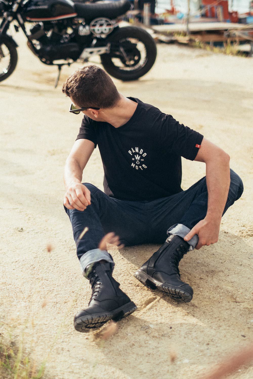 This stylish and versatile technical boot combines urban, touring and café racer segments all in one product. Important technical features like: water-repellent full-grain leather with matching leather gear shift protector, internal PU ankle inserts on both sides, waterproof and breathable lining, padded collar with lace and zipper closures.