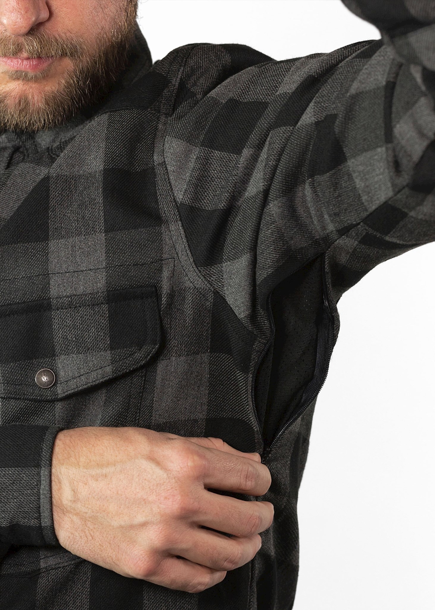 The JDM Motoshirt with XTM-Fiber® was designed specifically for riding motorcycles. It combines a great classic look with cutting edge safety technology. The Lumberjack Shirt’s high functionality and appropriate protection in extreme conditions come from combining flannel cotton twill with a lining made from the worldwide innovation XTM-Fiber® (fiber technology made from DuPont™ Kevlar® / Coolmax® and Lycra®). So the Motoshirt feels super light and is very comfortable to wear even on hot summer days. Equipped with armor pockets on the shoulders, elbows and back, it allows you to add extra armor where needed.